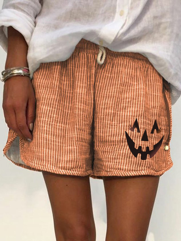 2023 New Halloween Striped Casual Shorts - Orange