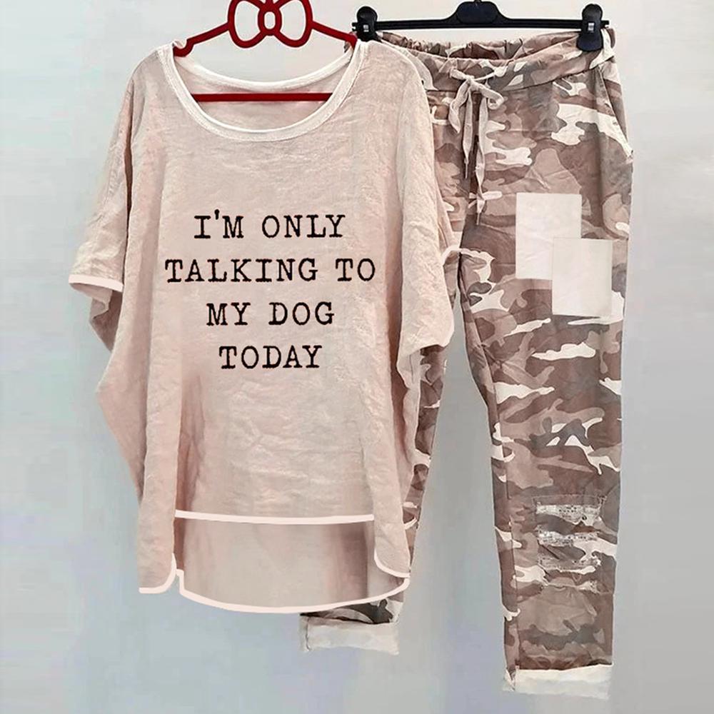 Khaki Print Scoop Neck Two Piece Set