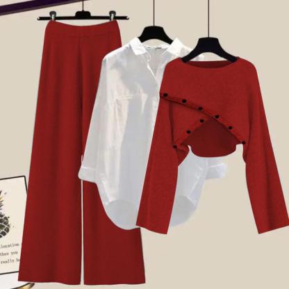 This Showy Red Round Neck Three Piece Set is made of highly durable fabric, designed to last and keep you comfortable all day long. Its round neckline and three-piece design make it a great choice for any occasion. Whether you're dressing it up or keeping it casual, this set is sure to turn heads.