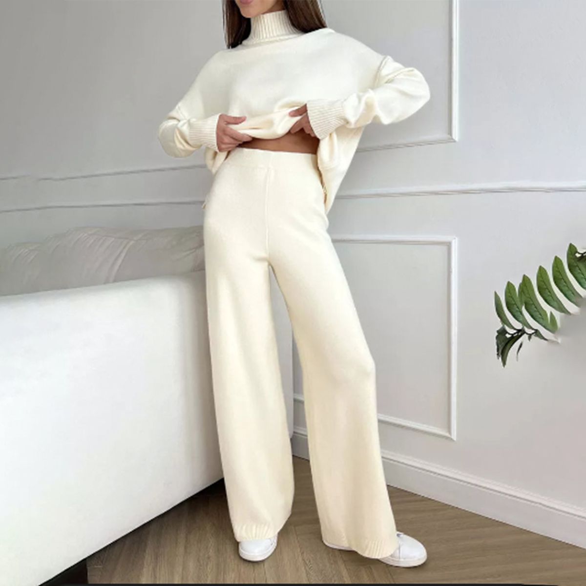 This White High Neck Plain Lounge Set is perfect for your leisurely activities. Crafted from soft fabric, the set is designed to give you all-day comfort. The classic white color is incredibly versatile, pairing with any outfit. With a high neckline and unembellished style, this lounge set is the perfect blend of simple and stylish.