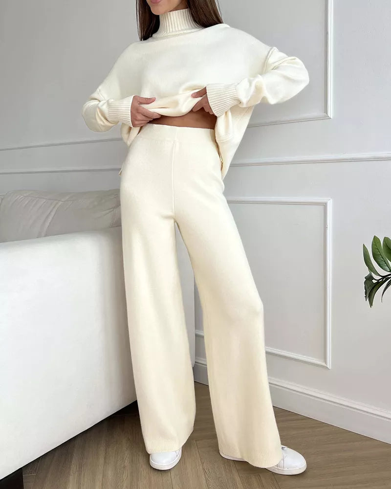 White High Neck Plain Lounge Set