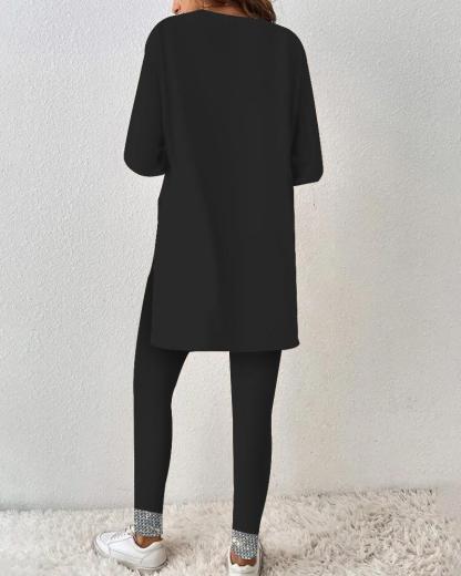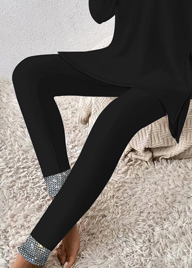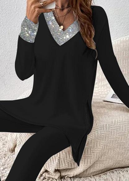 Cool Black V-Neck Two Piece Set