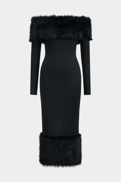 Anna Off Shoulder Faux Fur Trim Midi Dress