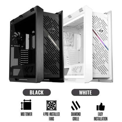 Asus ROG Strix Helios II GX601S EATX Mid-Tower PC Gaming Case with Dual Tempered Glass Side Panels (Black, White)