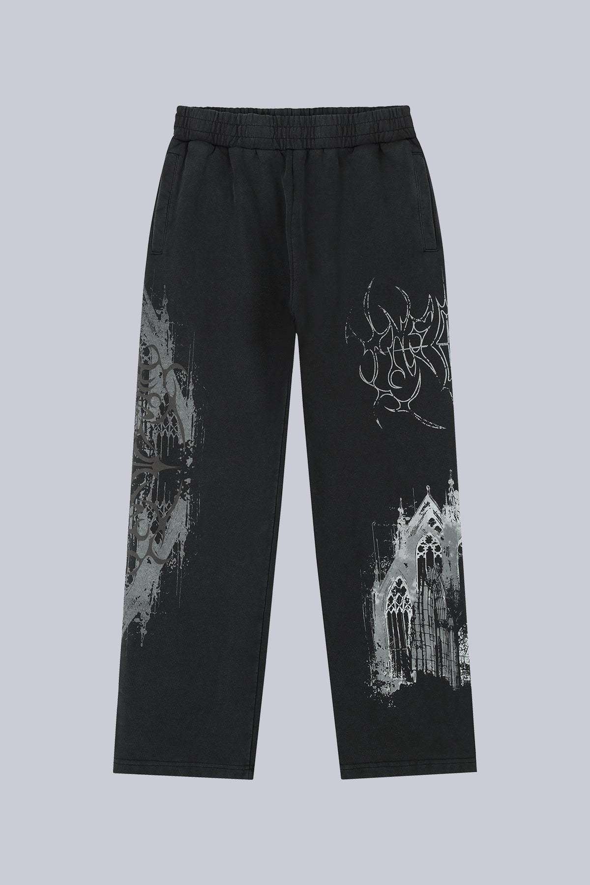 Revolving around the aesthetic of gothic architecture, this garment contrasts eeriness with its light colors.
