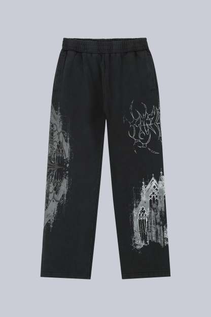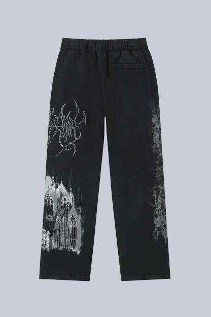 Featuring a calm, sleek, black base with large prints over each leg & hidden interior drawstrings.