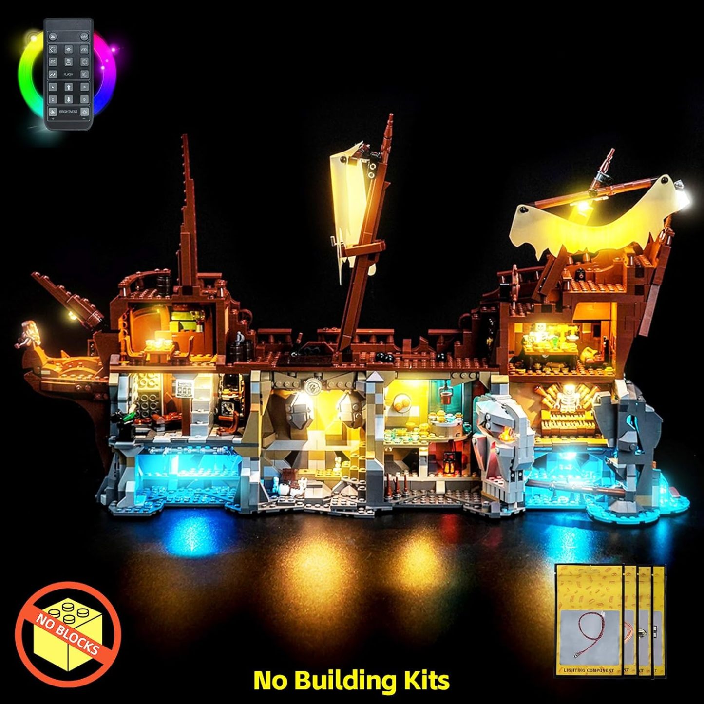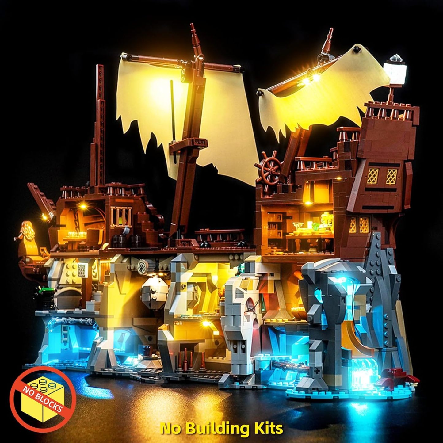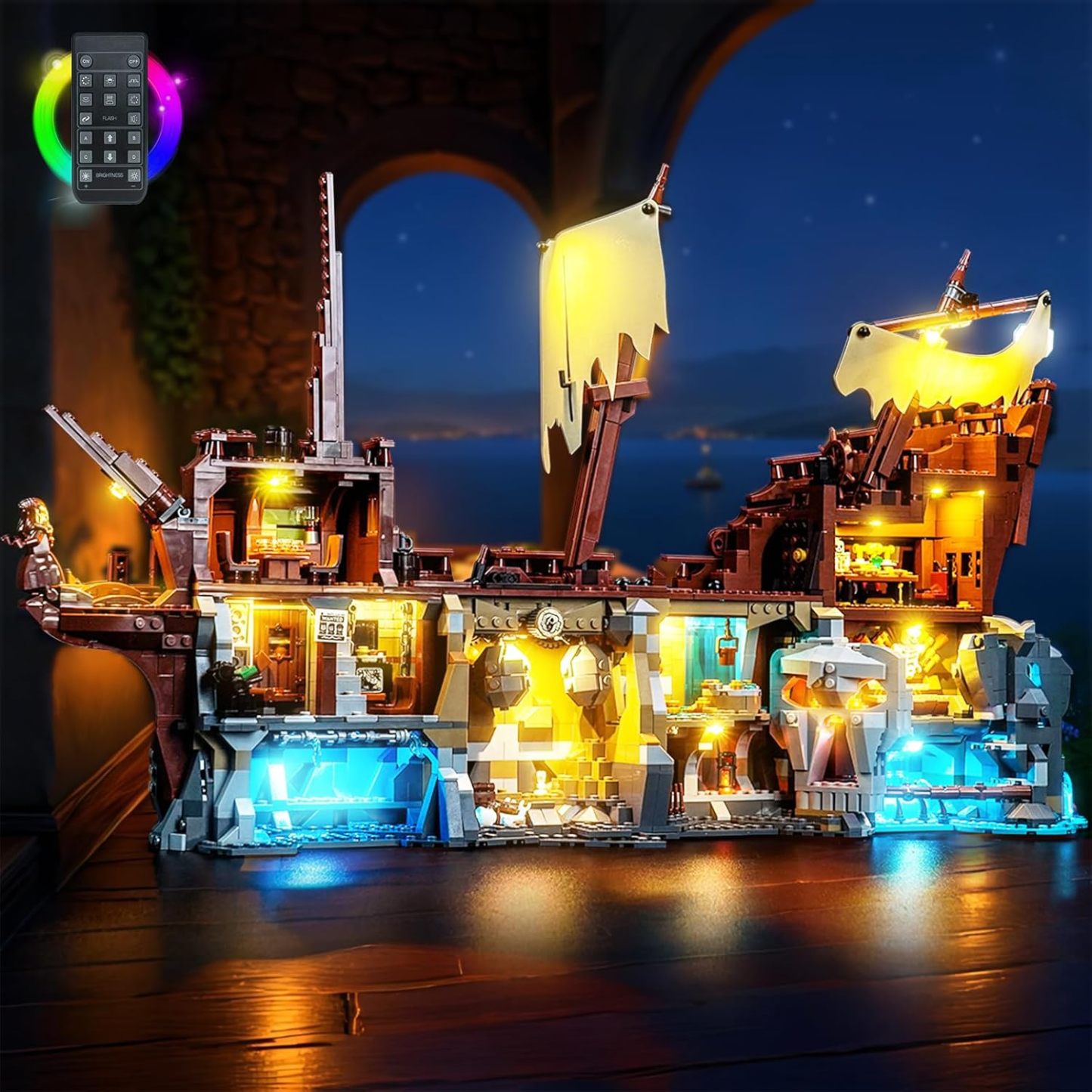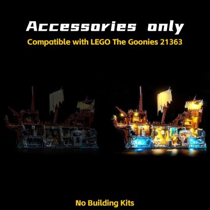 - Illuminate Your Ship: Breathe life into your Goonies Pirate Ship with vibrant LED lighting! Our carefully designed light strips integrate seamlessly within the model, illuminating every exquisite detail, transforming your build into a stunning display piece day and night