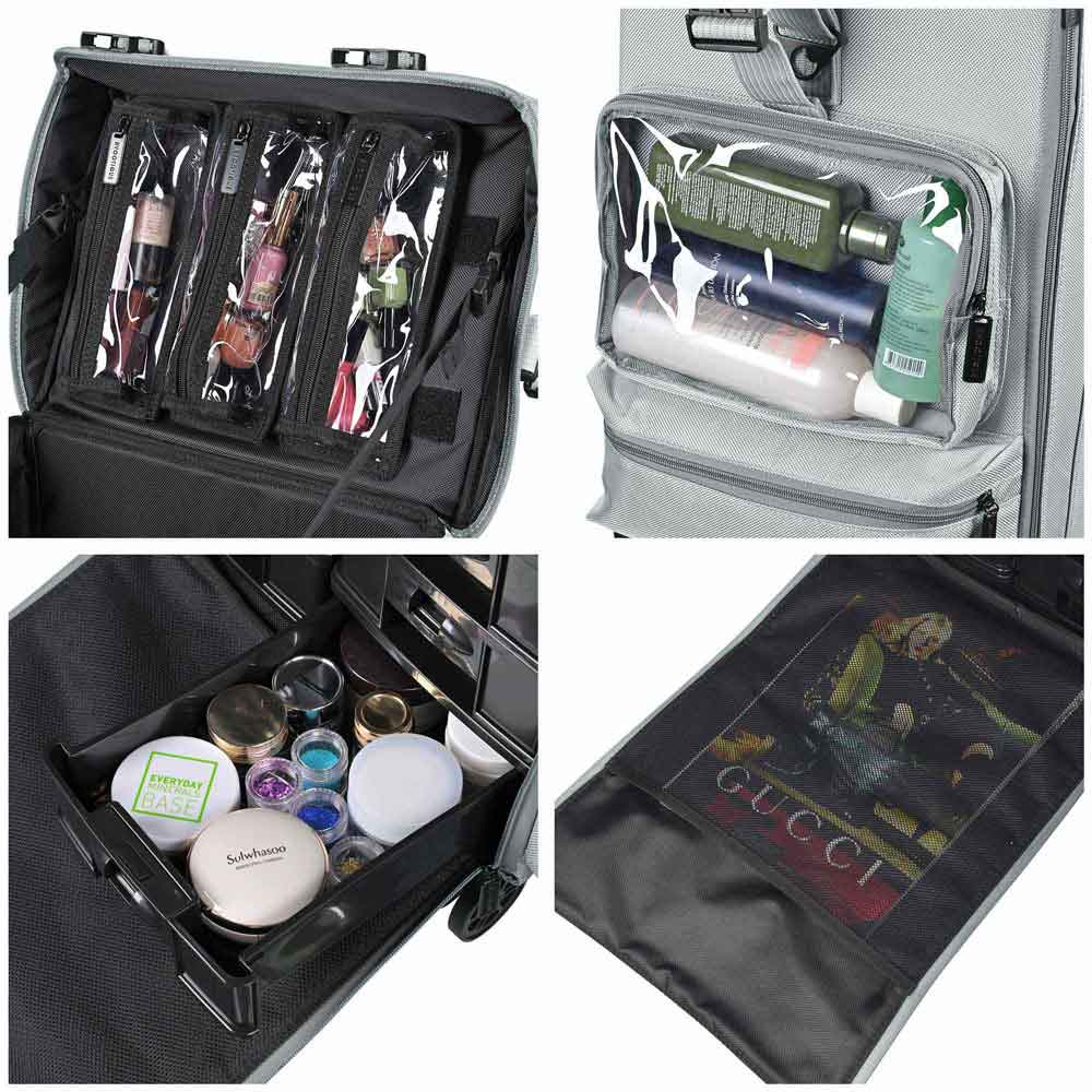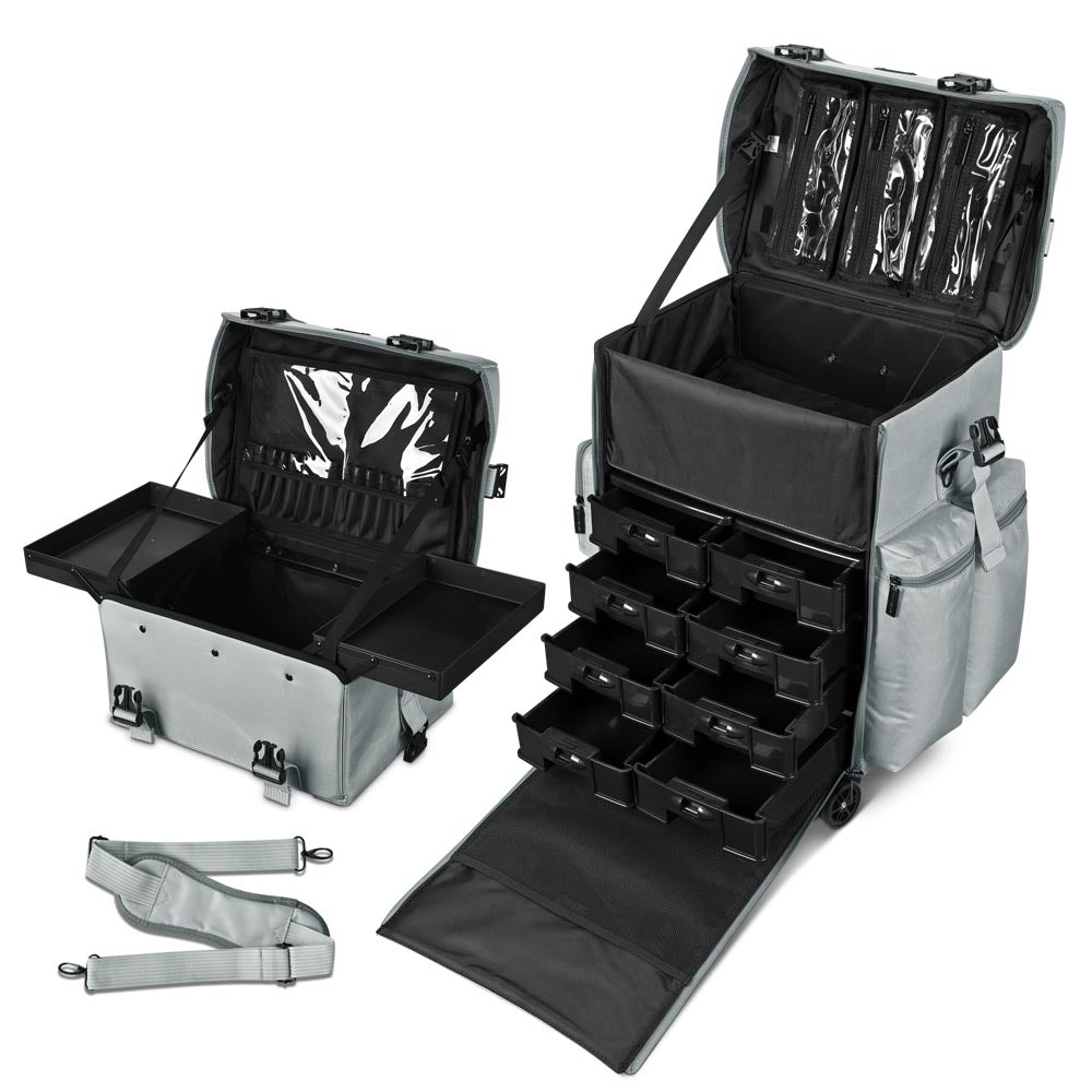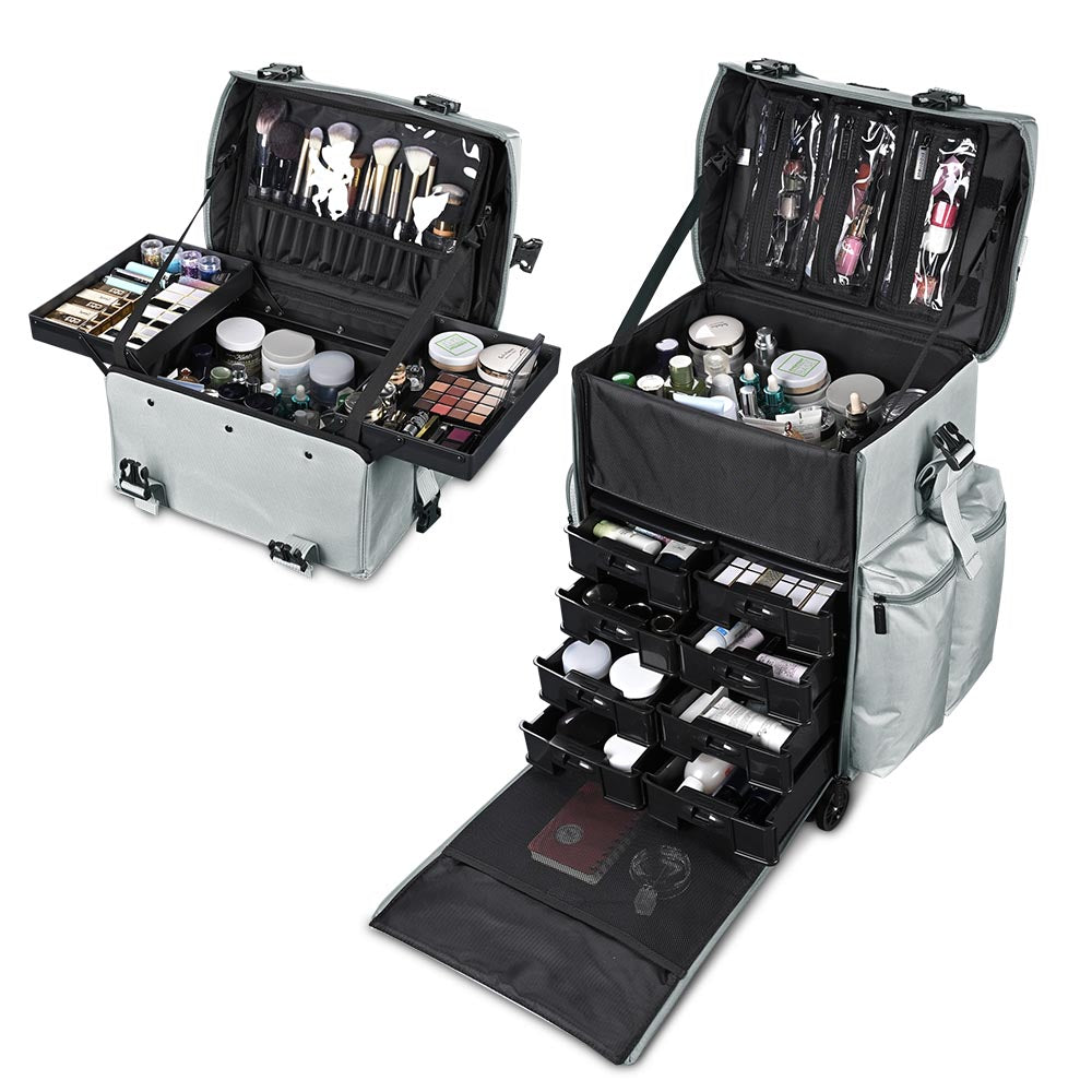 Byootique MassLux Gray 2in1 Rolling Makeup Case w/ Drawer