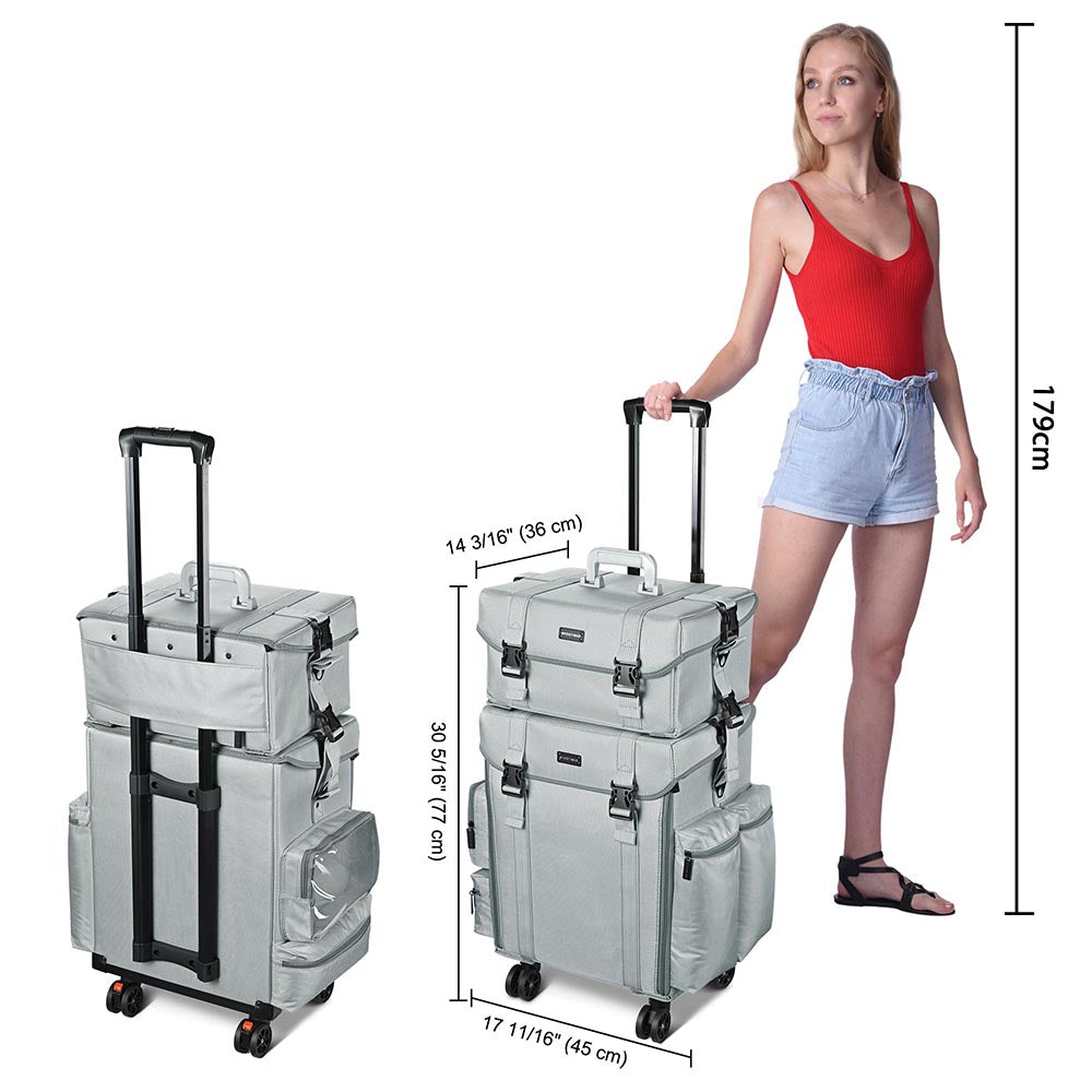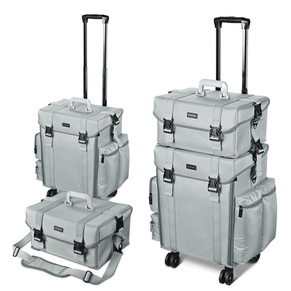 - Byootique pro 2in1 free combination fabric makeup case with detachable cases design that can be used alone or a 2in1 trolley