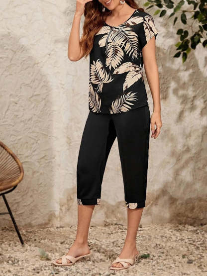This Chic Short Sleeve Print Two Piece Set is both stylish and comfortable. Made with high-quality materials, it features a unique print design and short sleeves to keep you cool. Perfect for any occasion, it's a versatile addition to any wardrobe. Elevate your style with this must-have set.
