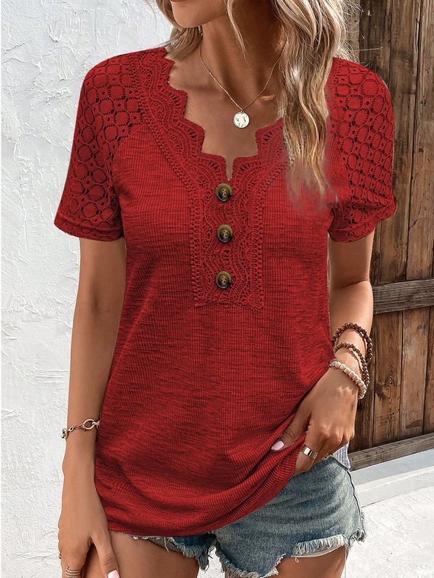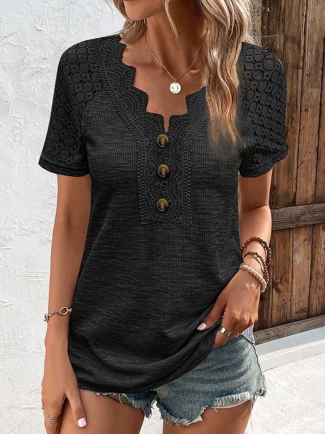 V Neck Casual Regular Fit Plain T-Shirt