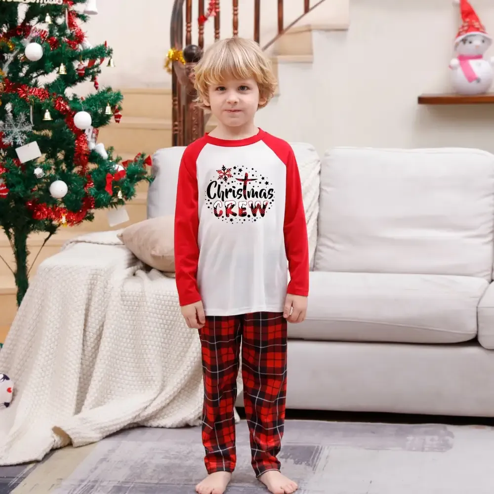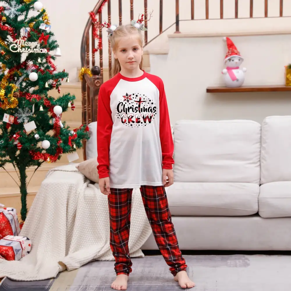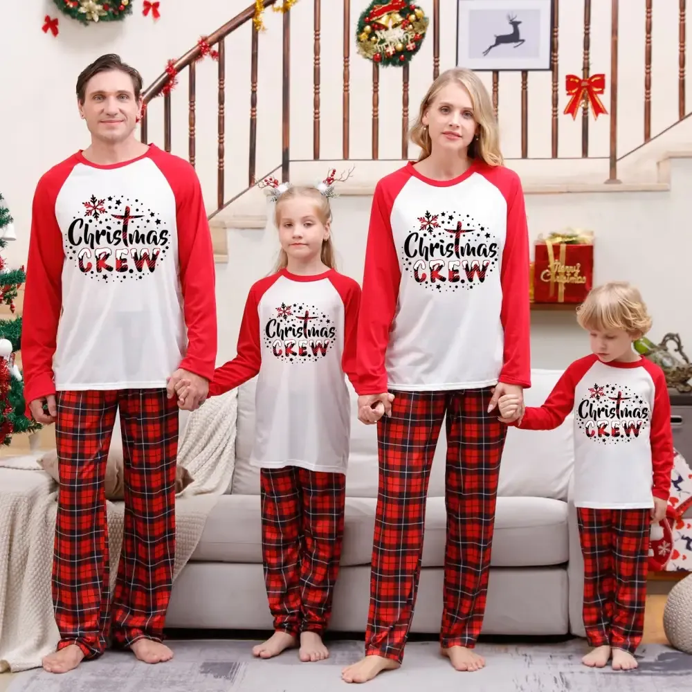 Christmas Crew red plaid parent-child matching pajamas cartoon print