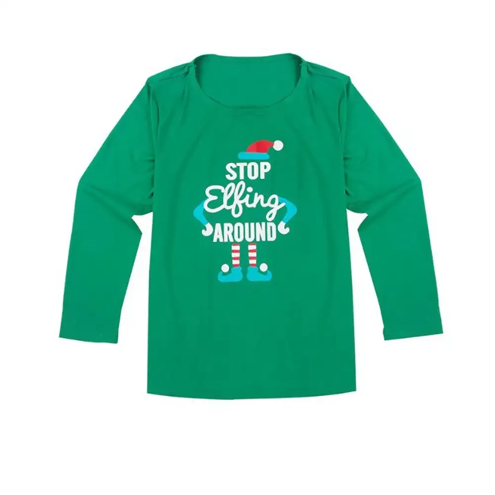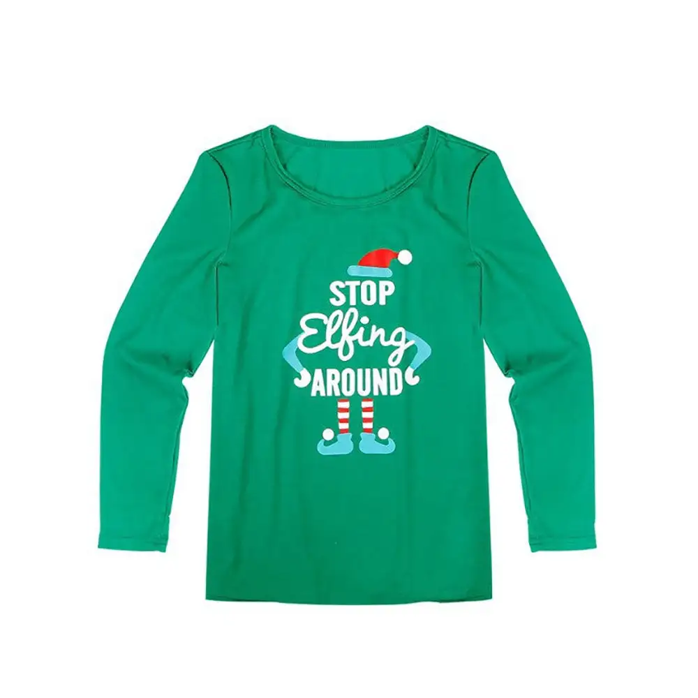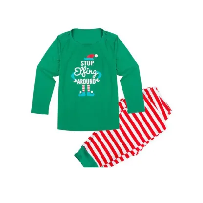 Christmas ELF Print Striped Family Matching Pajamas Set