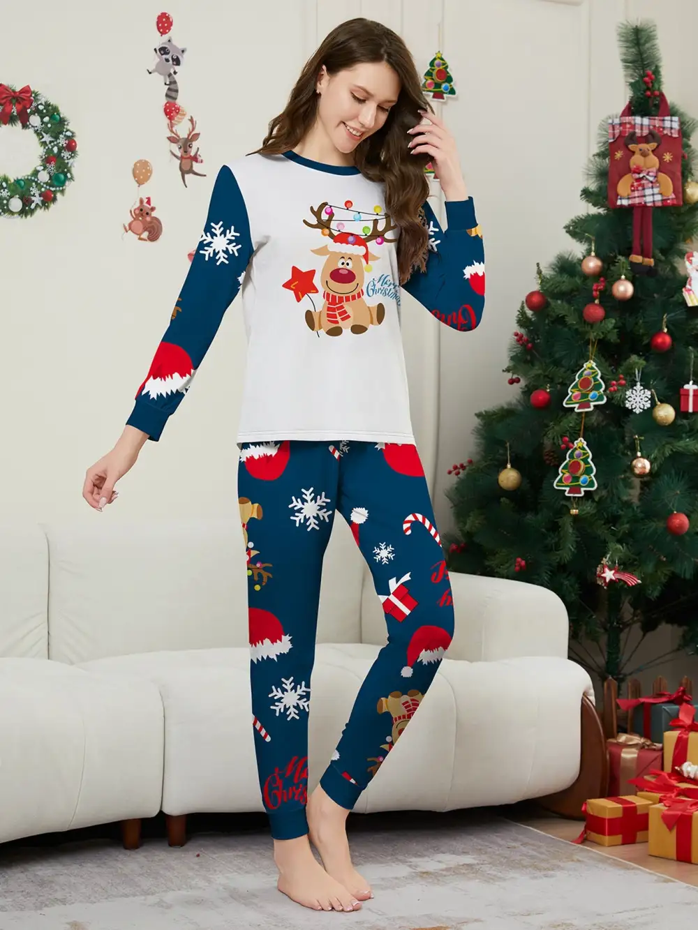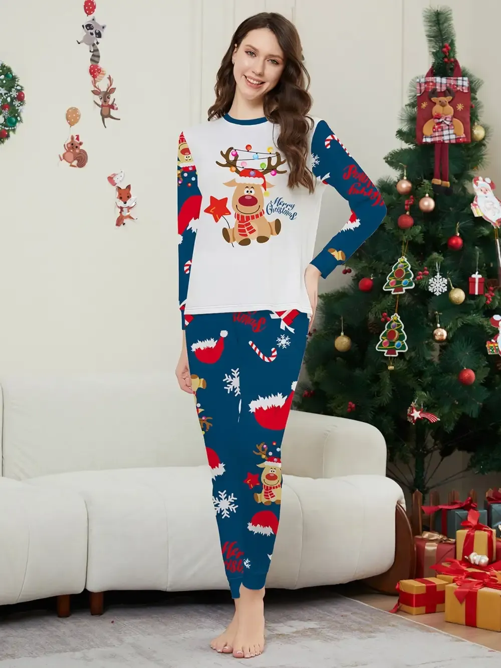 Christmas Fawn Printed Family Matching Christmas Pajamas Sets