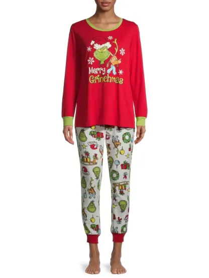 Christmas Grinch Cartoon Print Funny Xmas Family Matching Pajamas Sets
