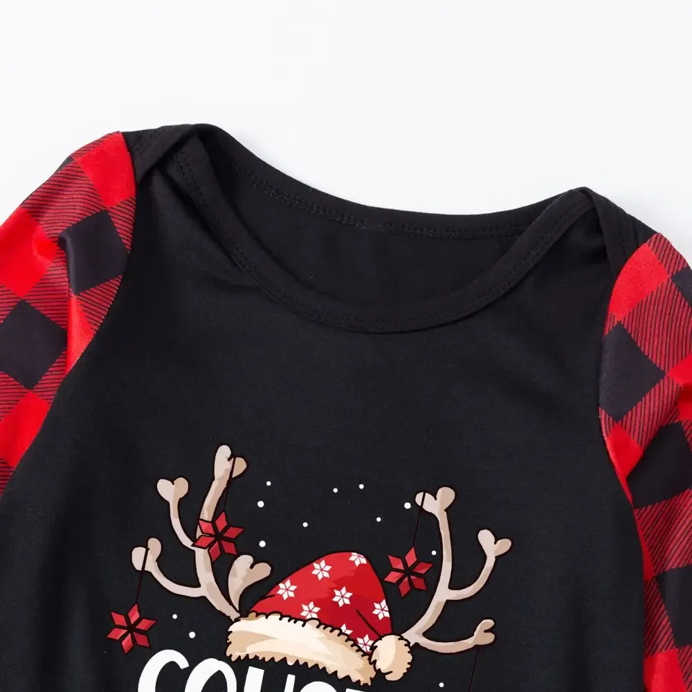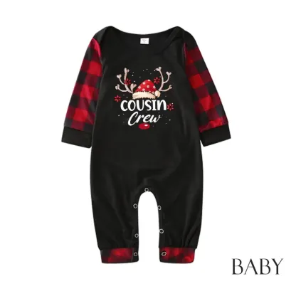 Cousin Crew plaid parent-child Christmas pajamas set with reindeer print