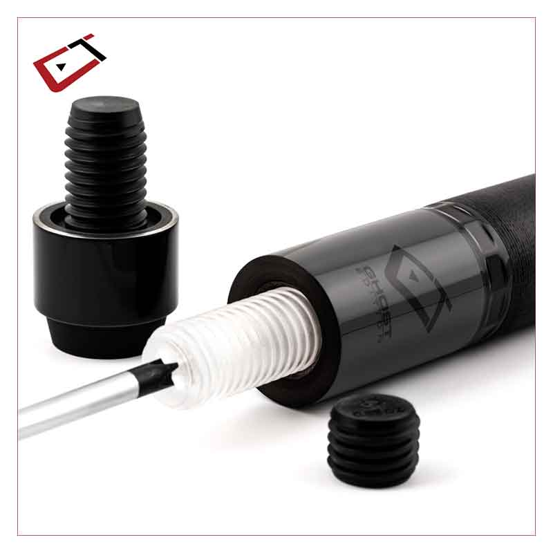 Cynergy SVB Ghost Edition cues are constructed of A+ grade kiln-dried, vacuum sealed, Canadian maple and are paired with the player’s choice of either 12.5 carbon fiber composite shafts. Each cue features black chrome 3D rings, joint collars and butt caps, a black Irish linen wrap and the signature of Cuetec Pro and five-time U.S. Open Champion Shane Van Boening, AKA, the South Dakota Kid.