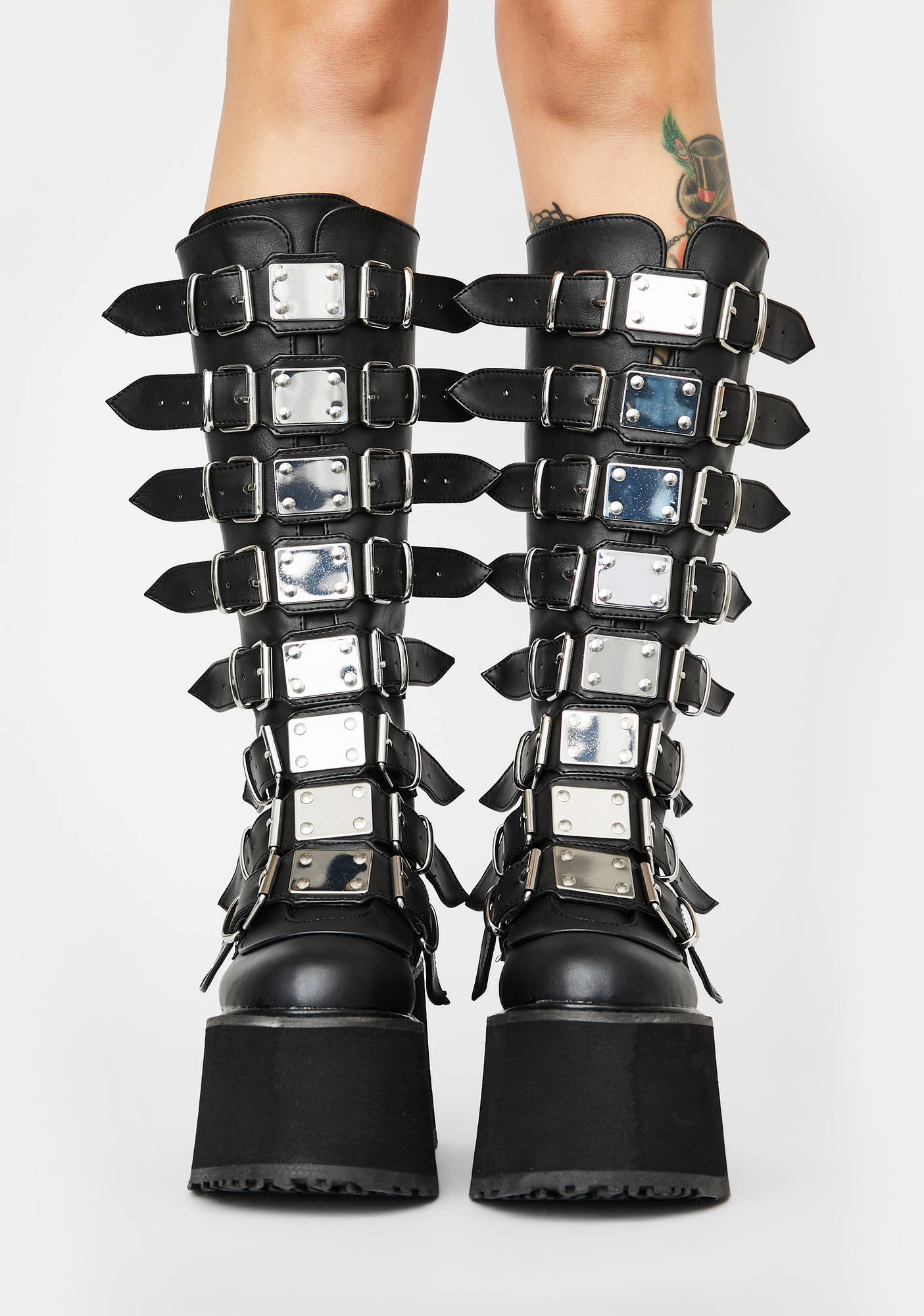 Damned Destiny Platform Boots cuz ur ready to burn it all to tha ground, bb! Show them how wicked you can get while wearing these ultra high platform boots with strappy buckles all over the front decked in metal hardware.