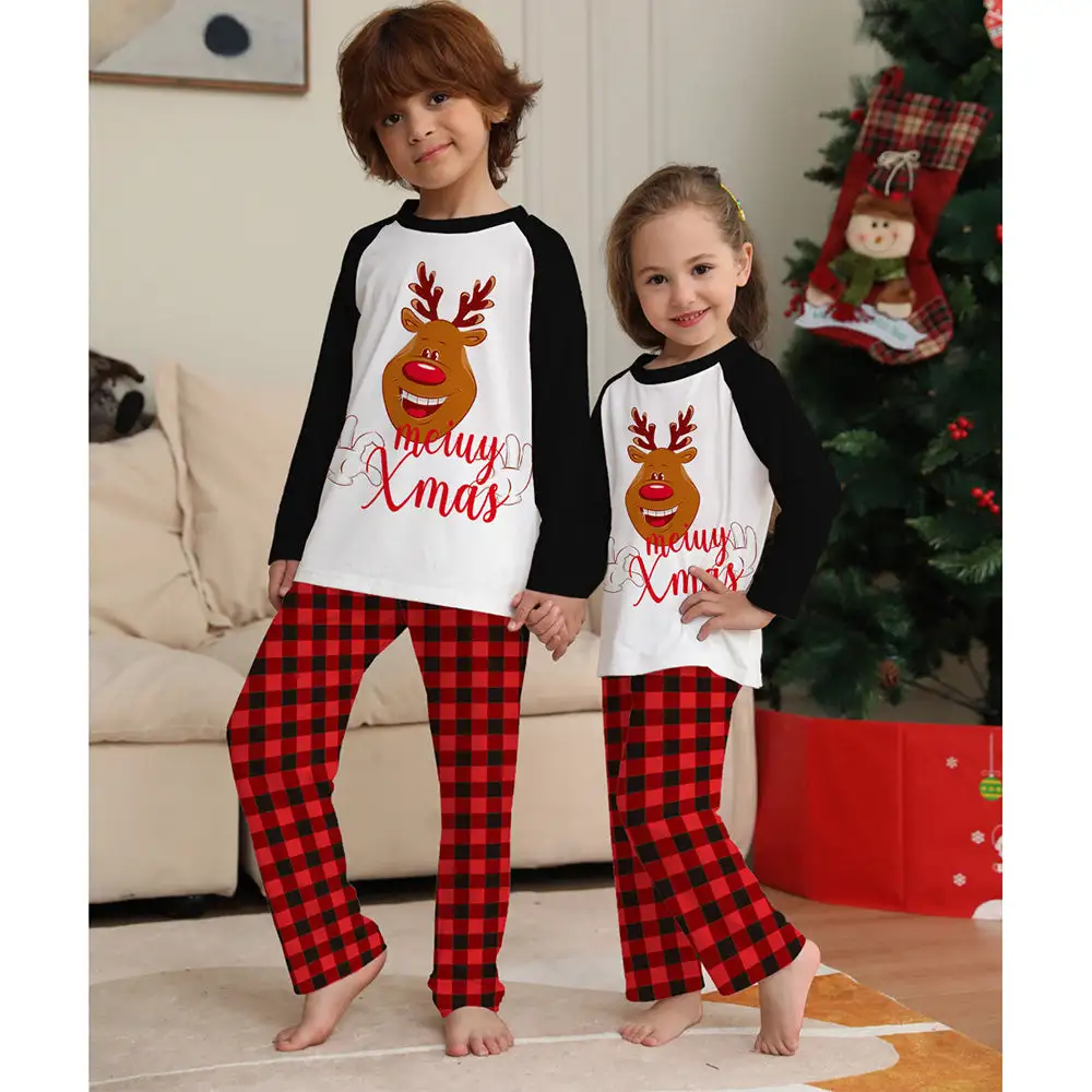 Deer Letter Lattice Printing Christmas Family Pajamas Set