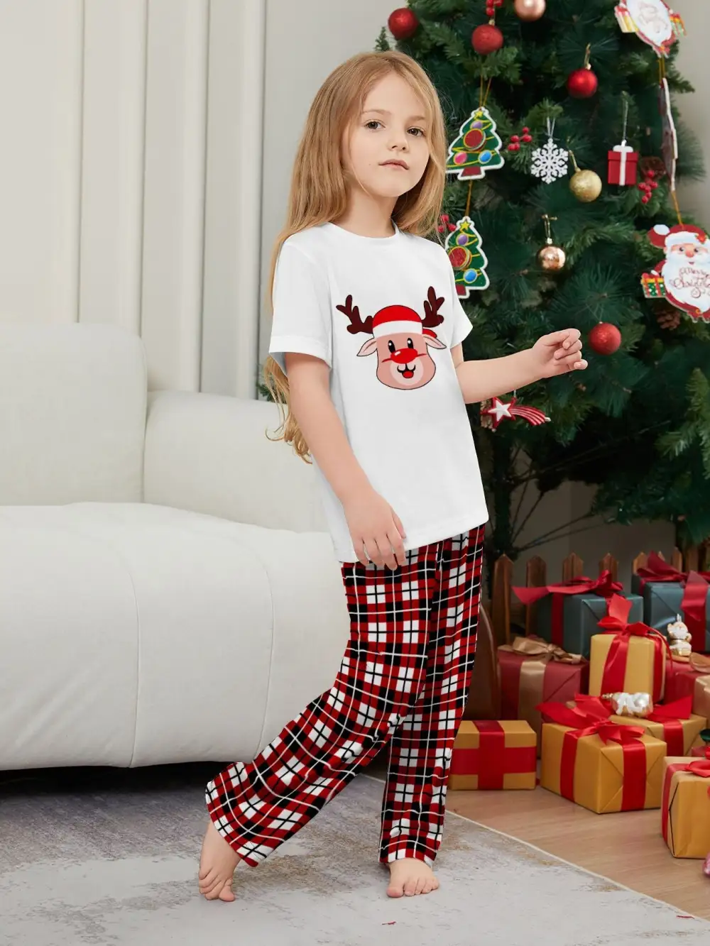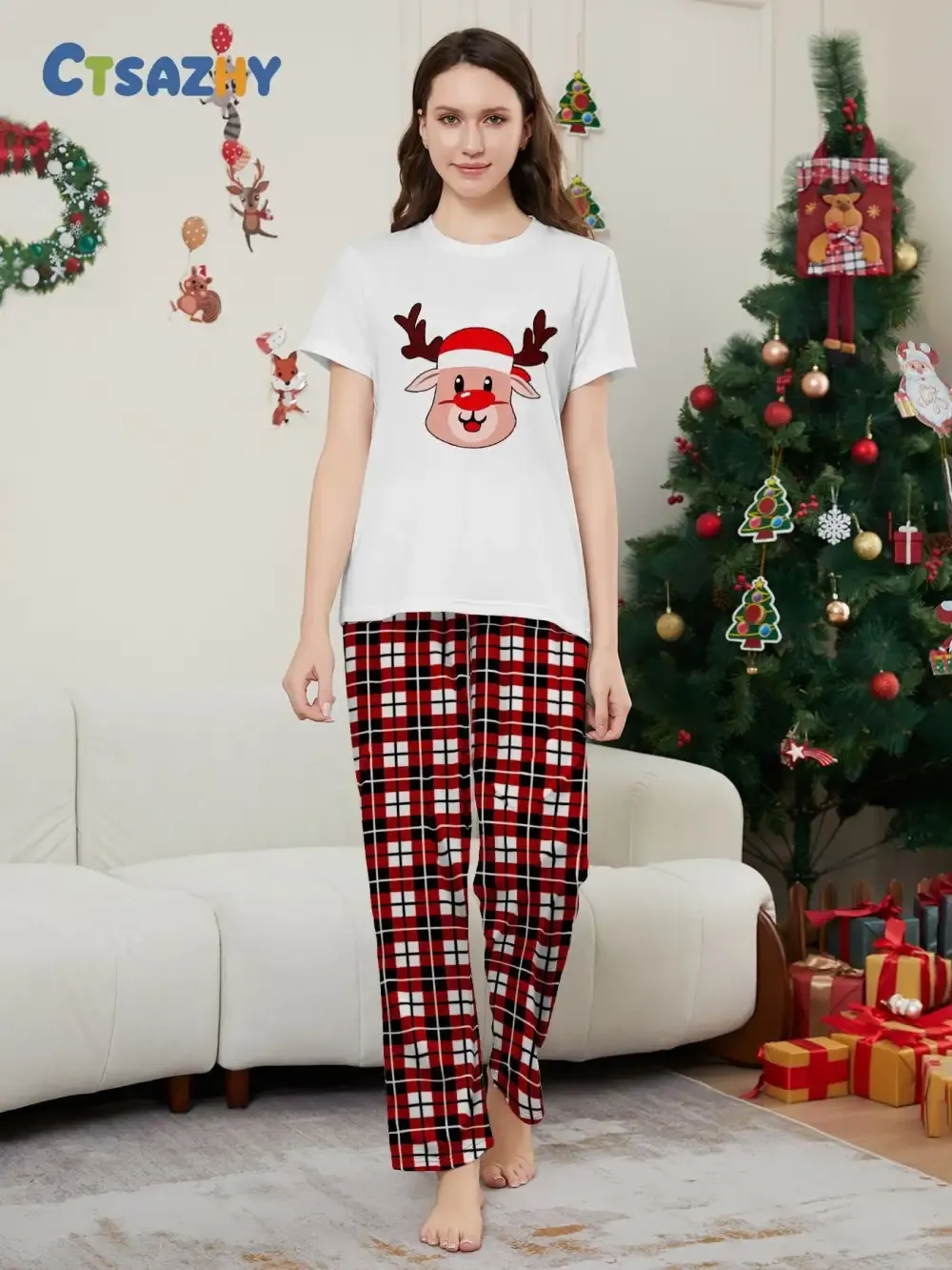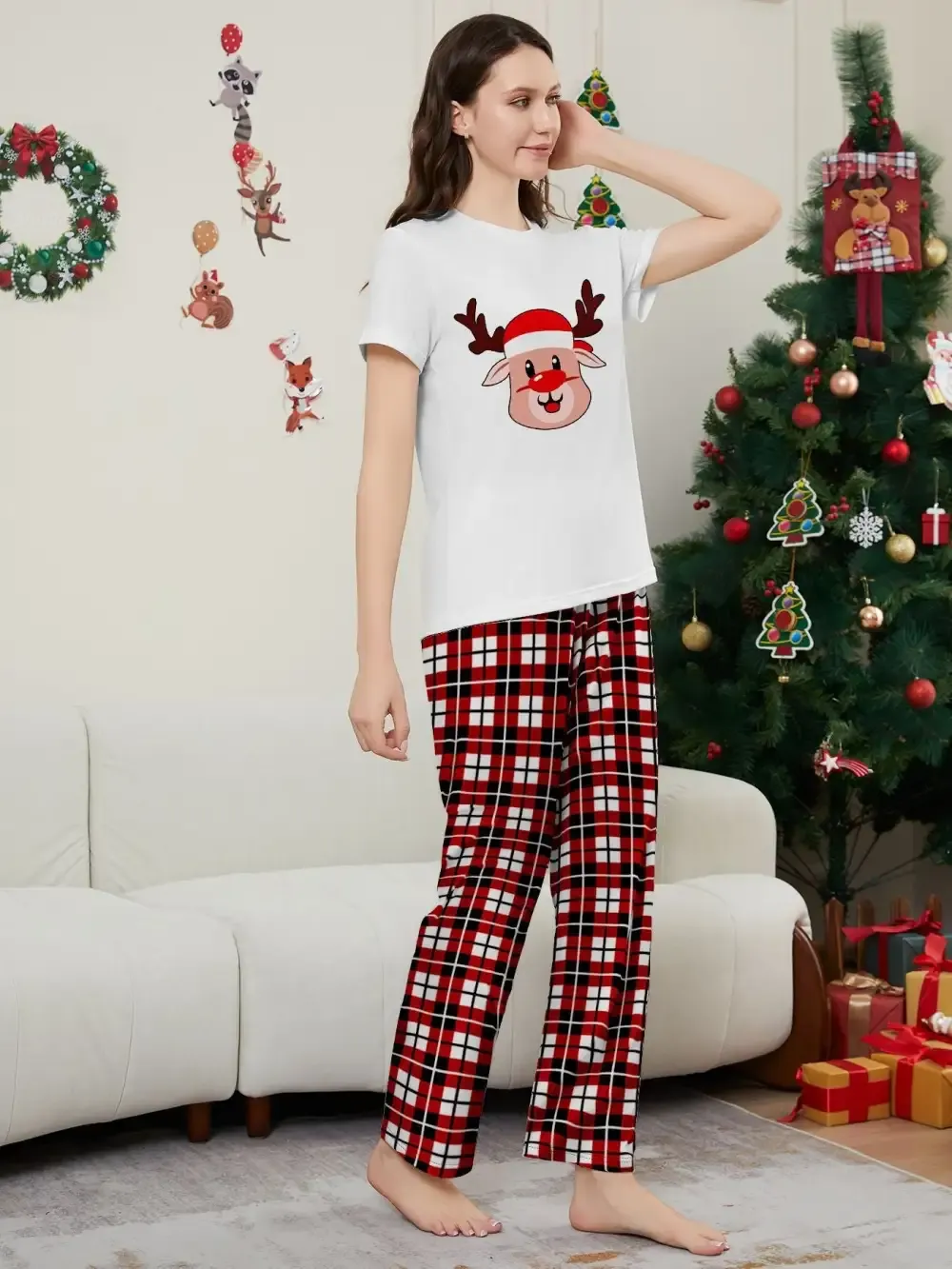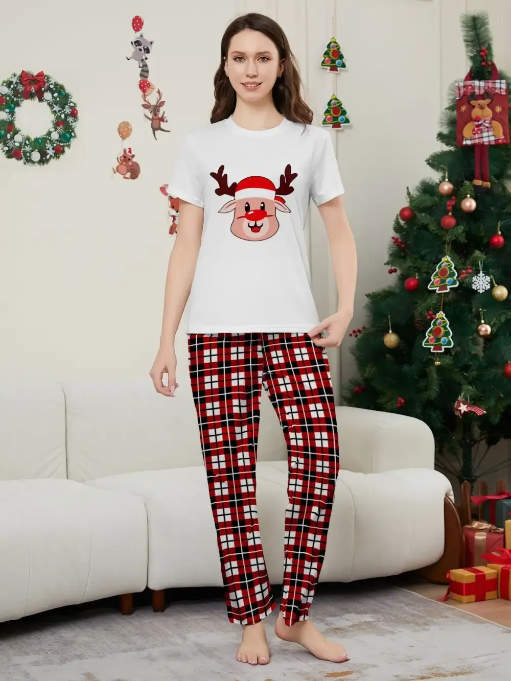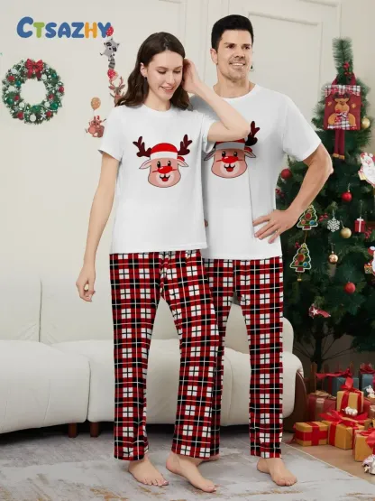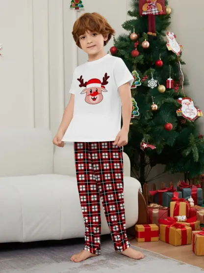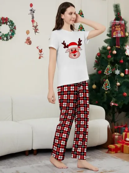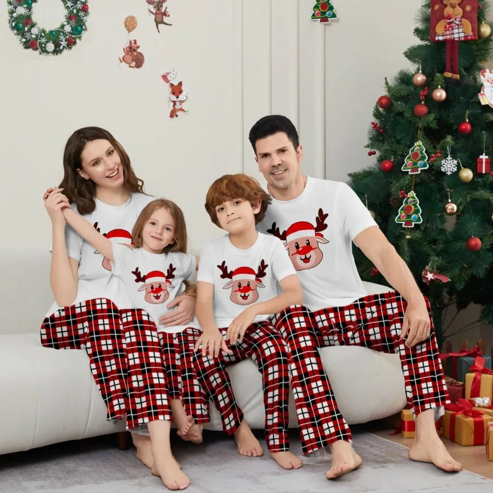 Deer Plaid Printed Family Matching Christmas Pajamas Sets