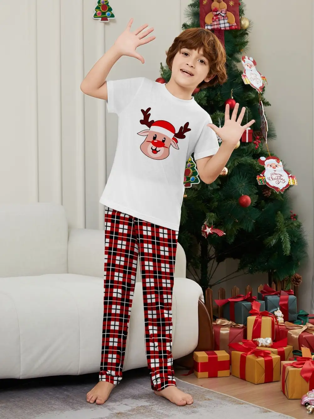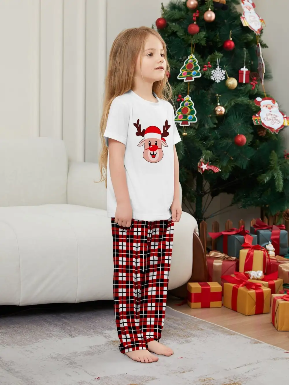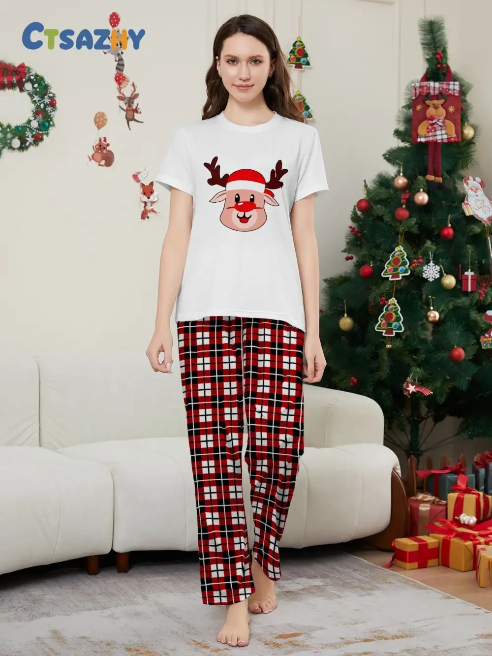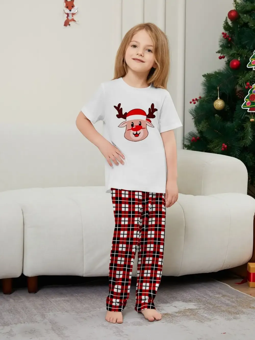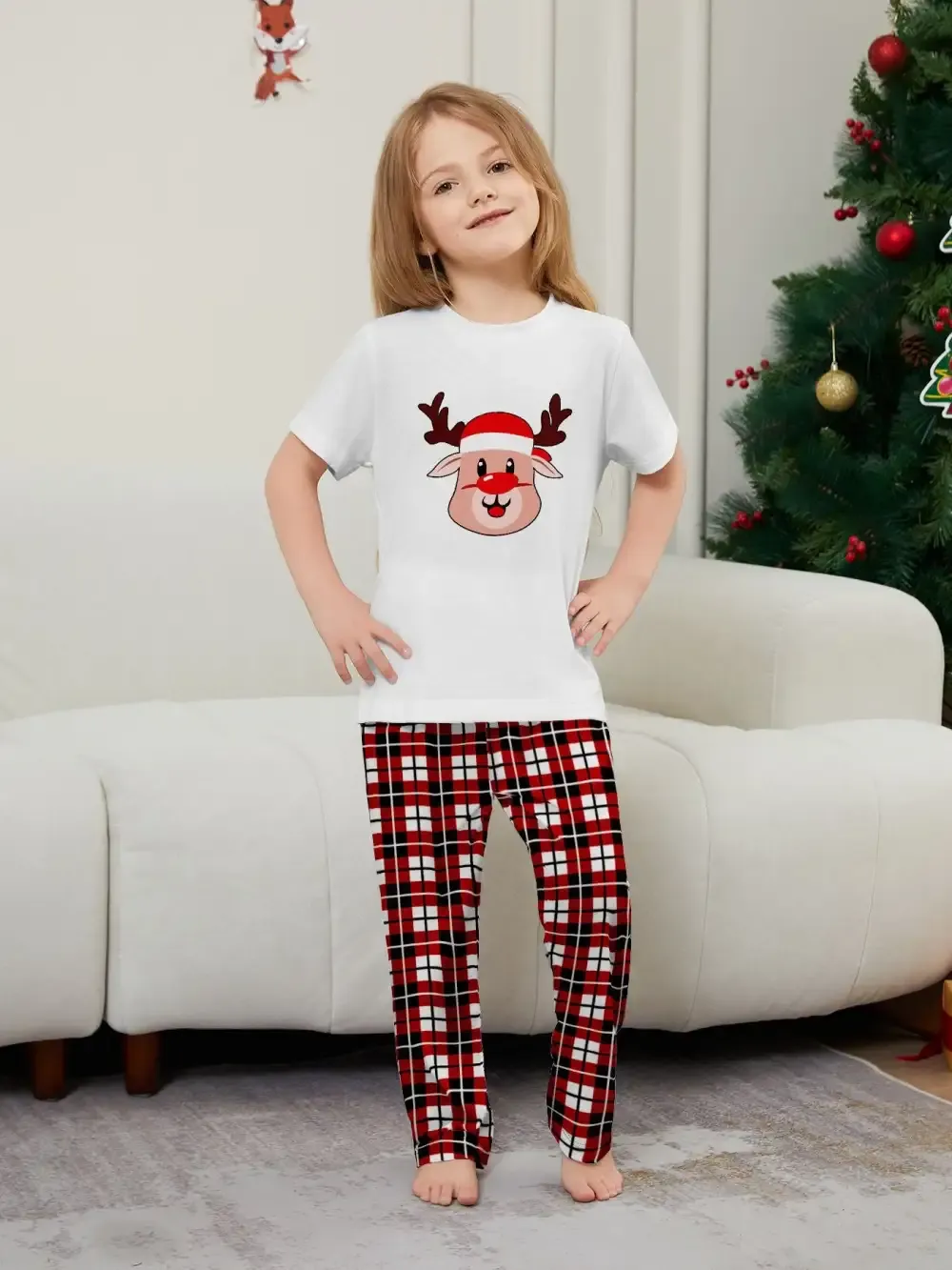Deer Plaid Printed Family Matching Christmas Pajamas Sets