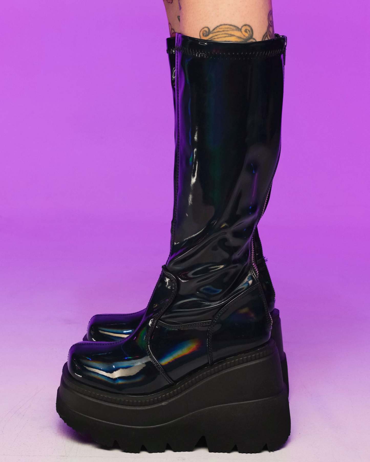 4 1/2" (114mm) Wedge Platform Stretch Knee High Boot , Full Length Back Metal Zip Closure