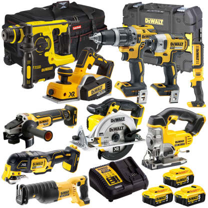 Dewalt 18V 10 Piece Cordless Tool Kit with 3 x 5.0Ah Battery & Charger T4TKIT-1162