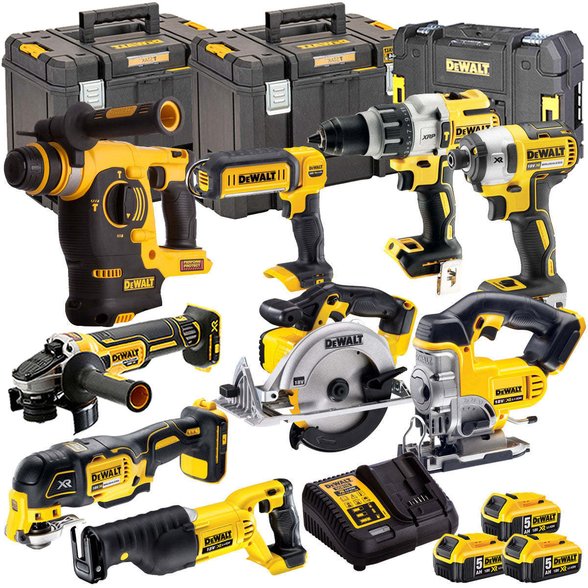Dewalt 18V 9 Piece Power Tool Kit with 3 x 5.0Ah Batteries T4TKIT-847