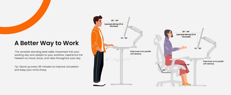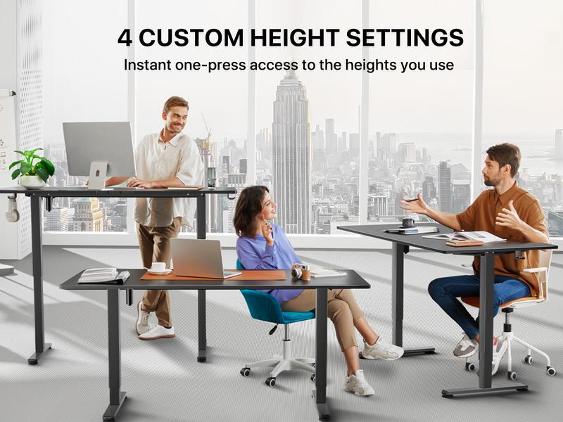 【Relieve sitting fatigue】: The height of the table can be adjusted to suit your needs. It is ergonomically designed and supports multiple postures such as sitting/standing/squatting. To achieve light exercise to activate brain cell excitement and work efficiently and smarter【Smooth Height Adjustment】: Freely select electric standing desk height, from 28.35" to 46.46". Save your favorite three settings and smoothly switch between them【Safe Low-VOC Materials】: Formaldehyde and other VOC emissions are sharply reduced, meeting US federal and state safe air standards