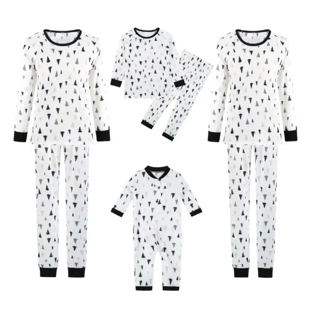 Family Matching Tree Black & White Print Sleepwear Pajamas Sets