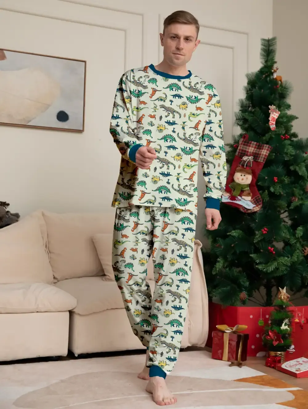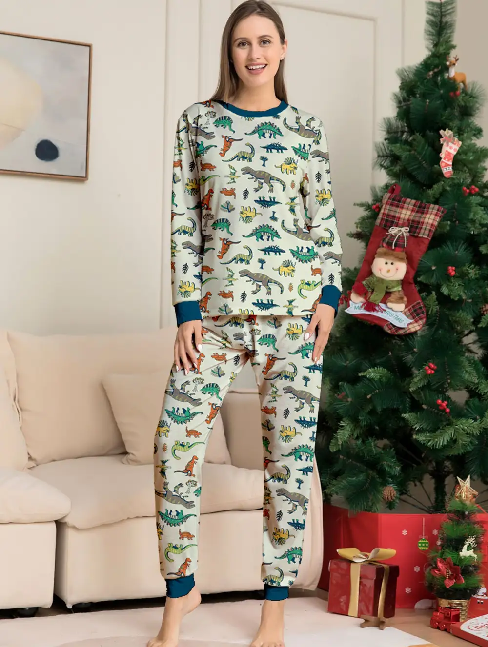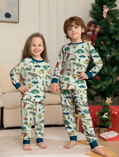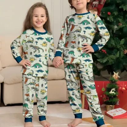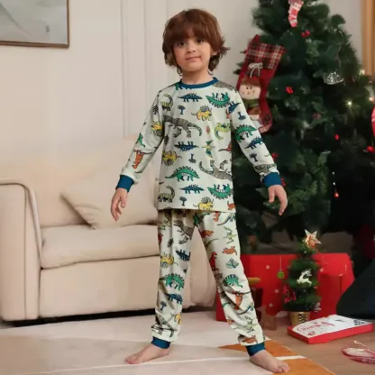 Family Parent-Child Dinosaur Printed Loungewear Pajama Set