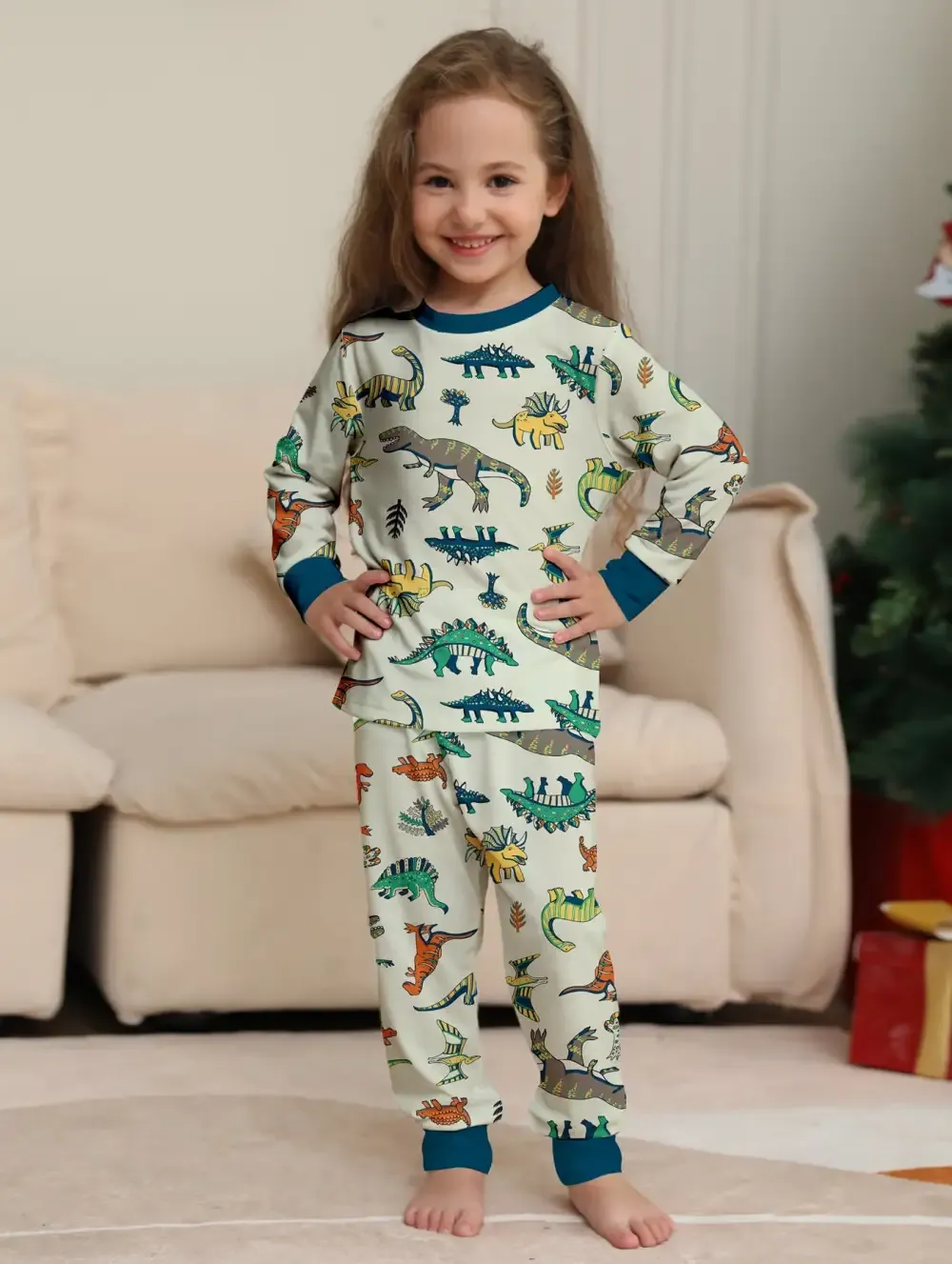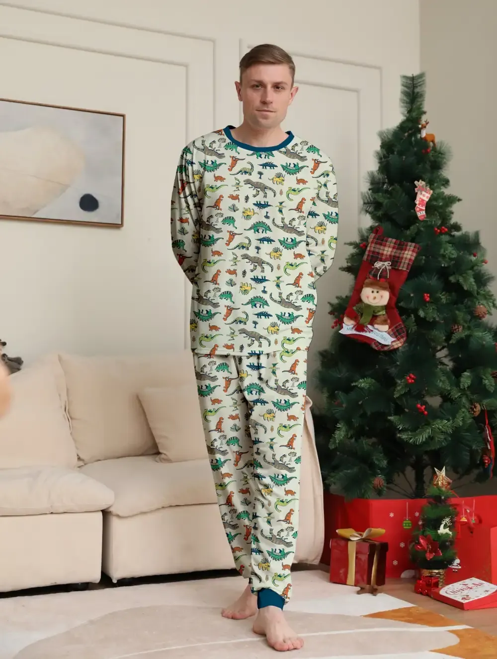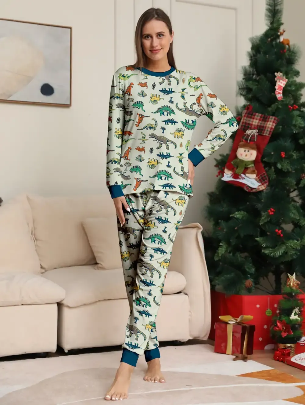 Family Parent-Child Dinosaur Printed Loungewear Pajama Set