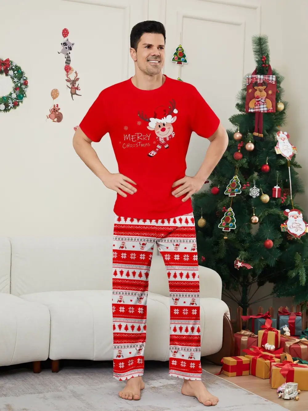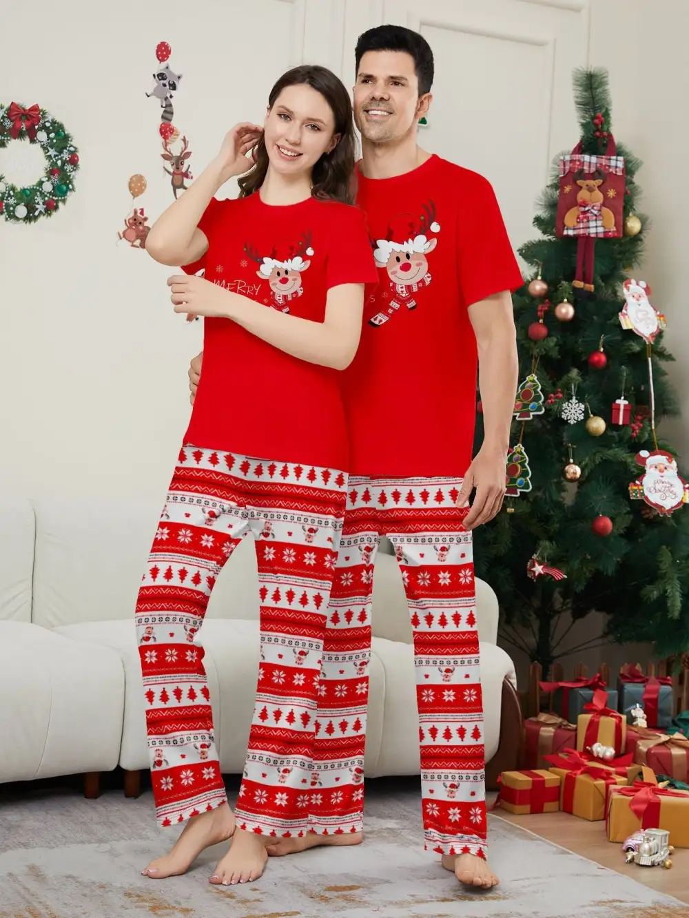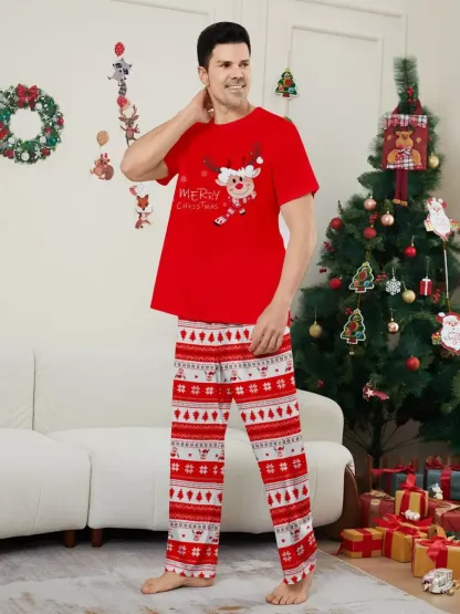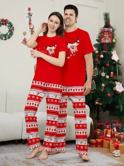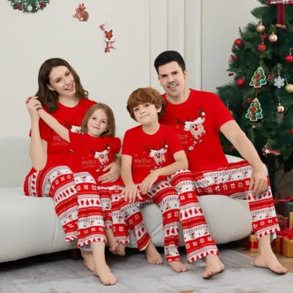 Fawn Printed Short Sleeve Family Matching Christmas Pajamas Sets