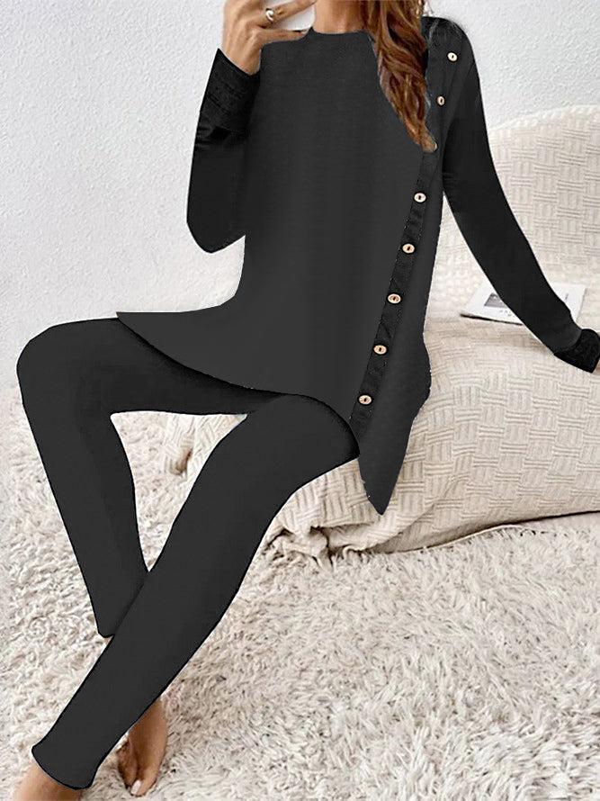 Experience lasting comfort and timeless style in this Black Long Sleeve Two Piece Set. Crafted from premium materials to ensure superior breathability and durability, this set is perfect for versatile, all-day wear. Its modern design and classic color will never go out of style.