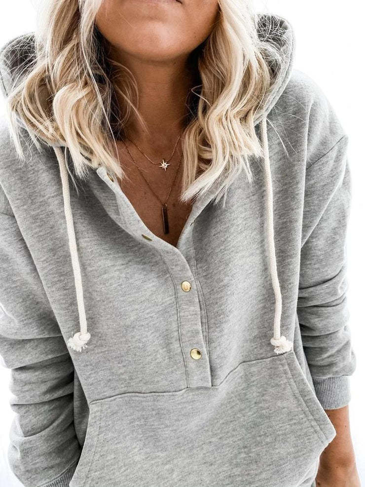 Loungewear gets an upgrade with this stellar heather grey set cute enough to wear all over town. A warm hoodie with golden snaps and a kangaroo pocket coordinates with slim sweatpants featuring a fashionable lace-up top and slant pockets. Layer it with a lace-trimmed camisole for a modern, flirty touch.