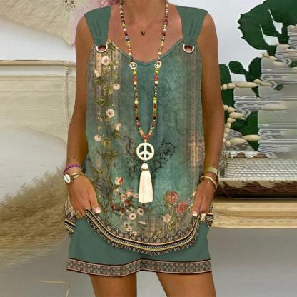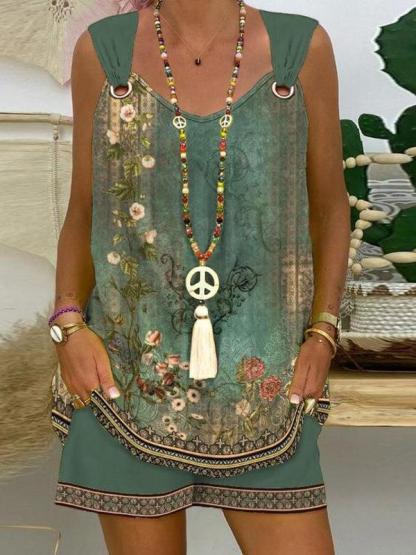 Green Sleeveless Print Two Piece Set