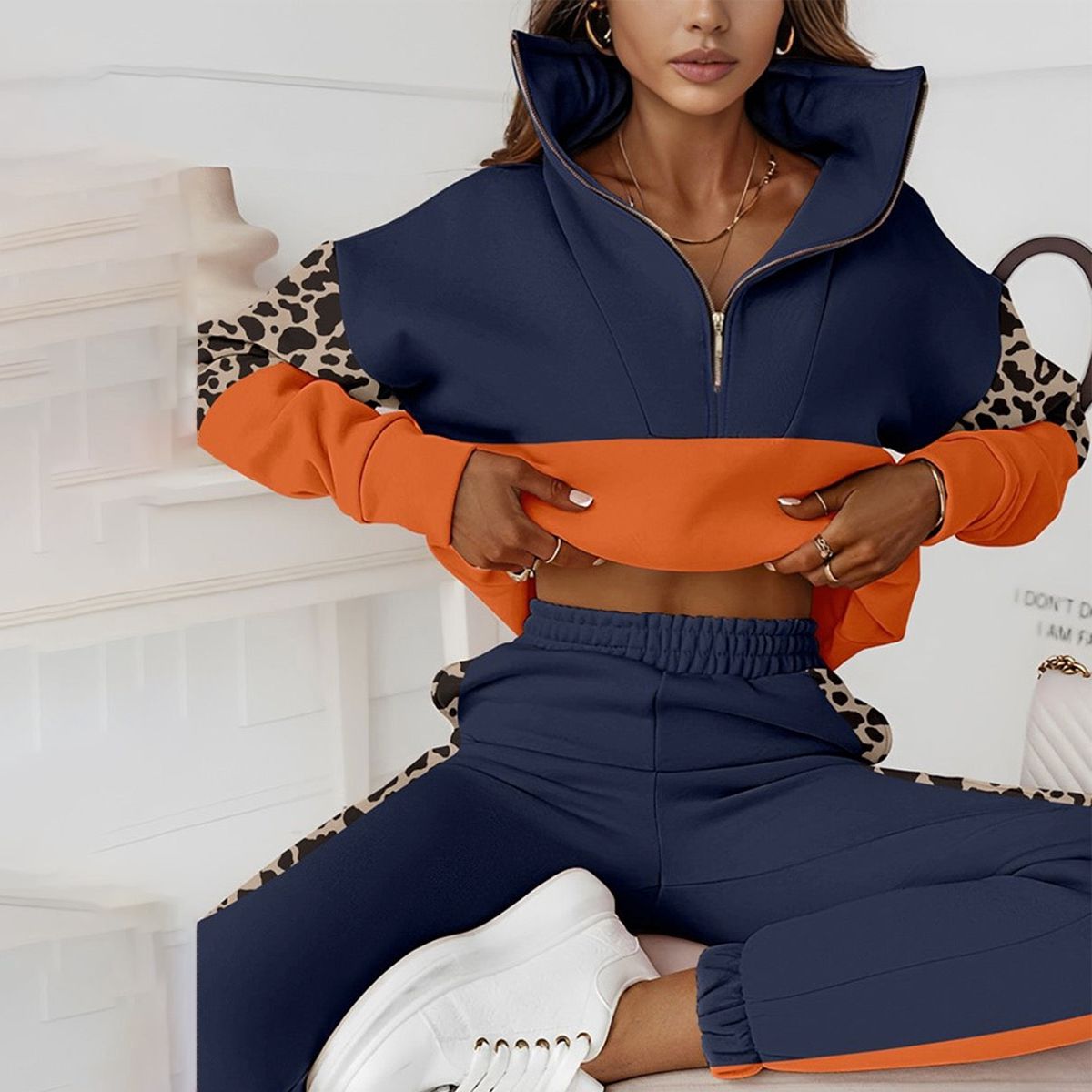 Unique Color Block Two Piece Set