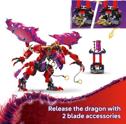- DIMENSIONS – The Thunderfang Dragon of Chaos figure in this 668-piece LEGO NINJAGO building kit stands over 9.5 in. (24 cm) tall