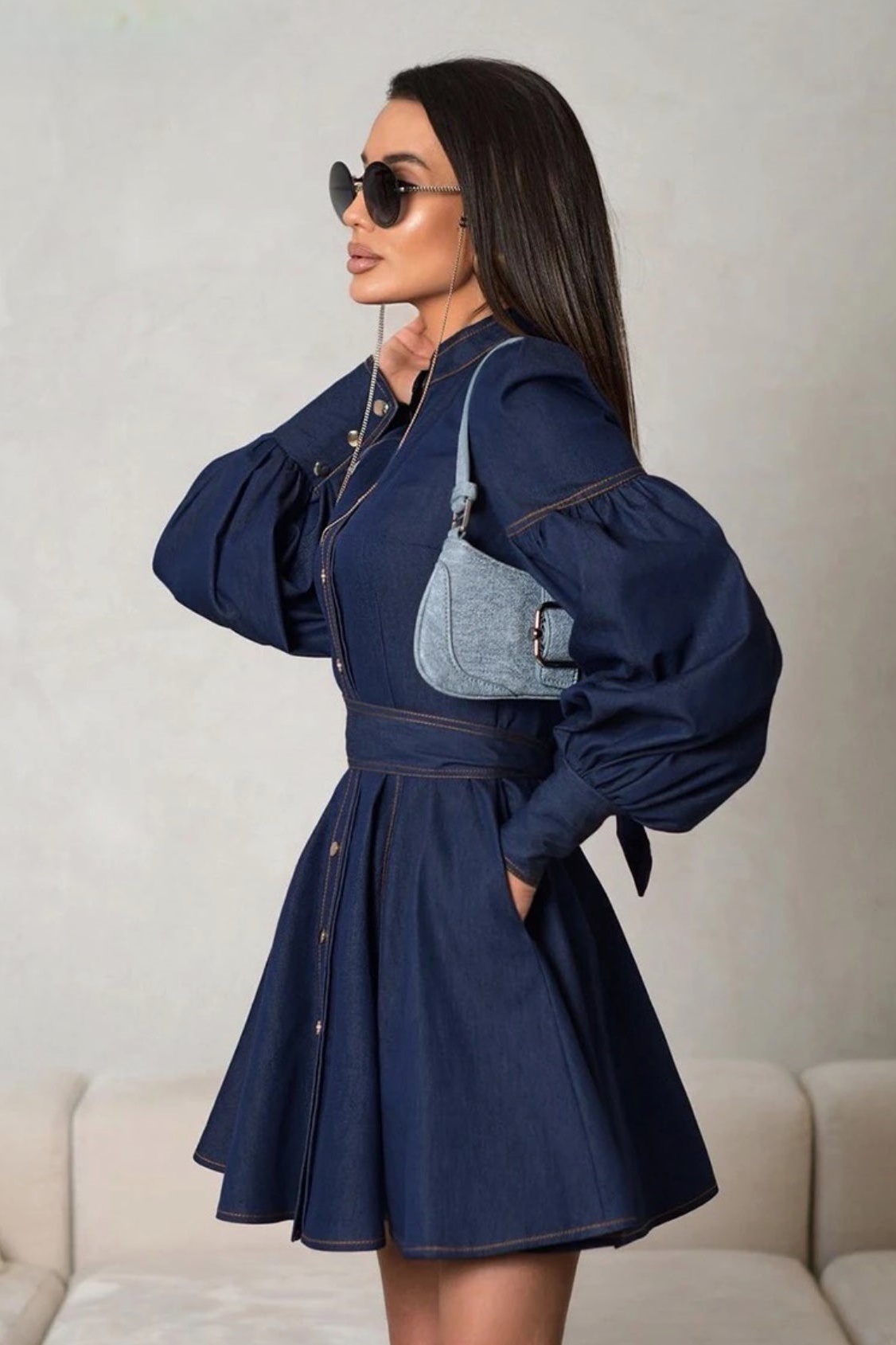 Lena Puff Sleeve Denim Mini Dress