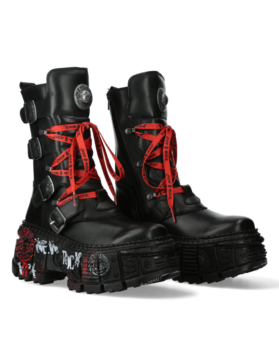 The Boot M-WALL028B-C1 of WALL COLLECTION. Genuine Leather. New Punk and rock Design with the power and finishing of a original Newrock.. The popular and Original Newrock design goth and metallic togeter in this style.. Fashion and Rock Design reloaded with the most extreme original newrock power.