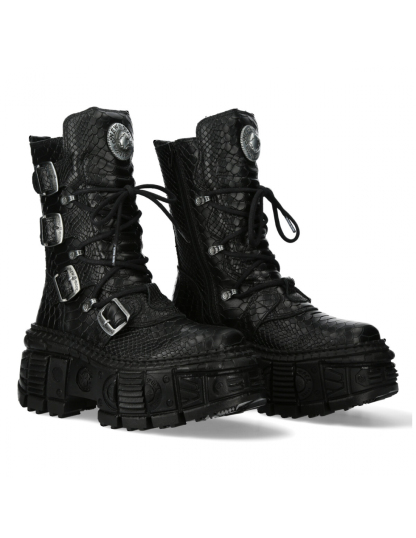The Ankle Boot M-WALL028B-S1 of WALL COLLECTION. Genuine Leather. New Punk and rock Design with the power and finishing of a original Newrock.. The popular and Original Newrock design goth and metallic togeter in this style.. Fashion and Rock Design reloaded with the most extreme original newrock power.
