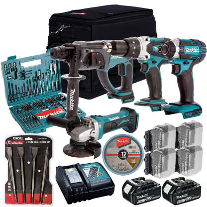 Makita 18V 4 Piece Combo Kit with 2 x 5.0Ah Battery Charger & Accessories Set T4TKIT-17212