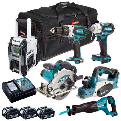 Makita 18V 6 Piece Power Tool Kit with 3 x 5.0Ah Battery & Charger T4TKIT-12877