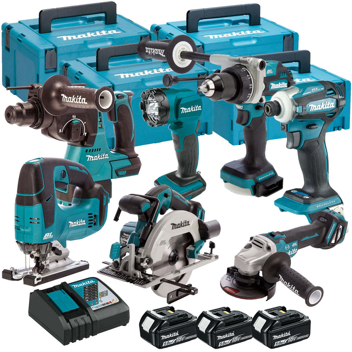 Makita 18V 7 Piece Cordless Kit with 3 x 5.0Ah Batteries T4TKIT-120
