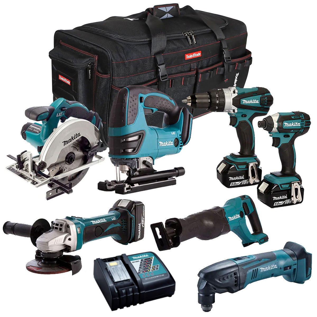 Makita 18V 7 Piece Tool Kit with 3 x 5.0Ah Batteries & Charger T4TKIT-4377