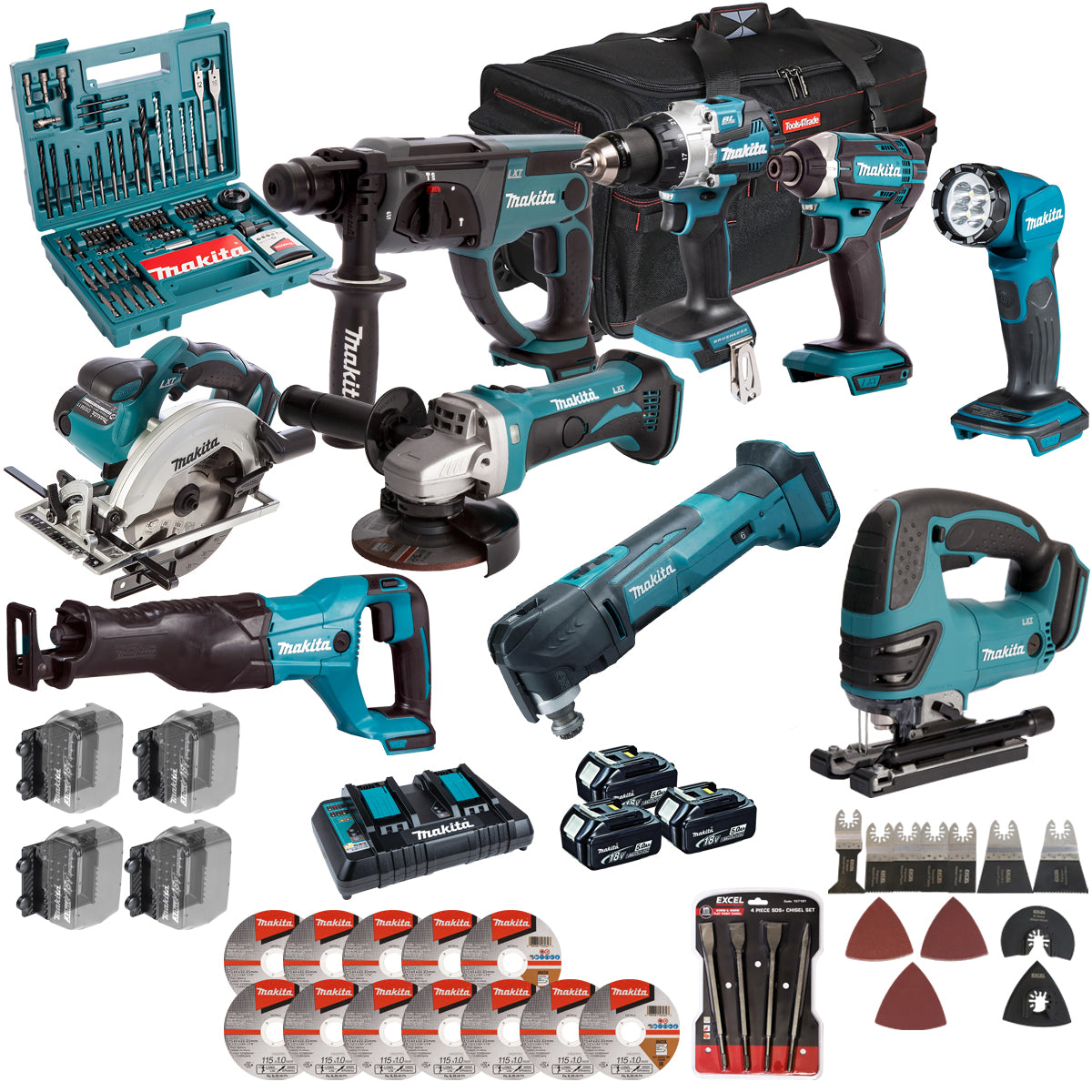 Makita 18V 9 Piece Combo Kit with 3 x 5.0Ah Battery Charger & Accessories Set T4TKIT-17228