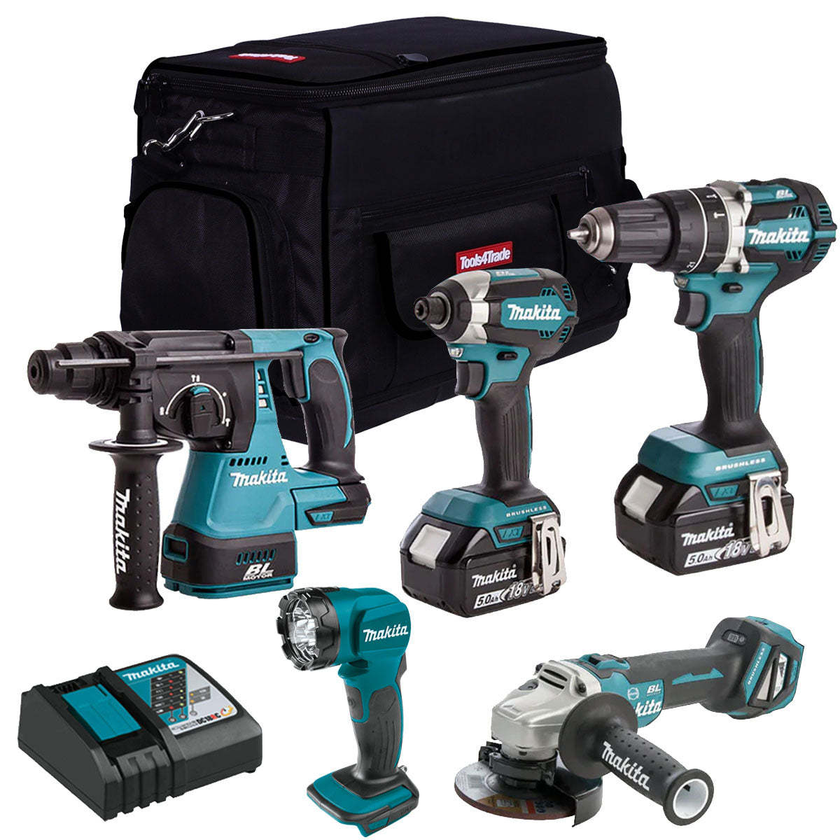 Makita 18V Brushless 5 Piece Cordless Kit 2 x 5.0Ah Batteries & Charger T4TKIT-832