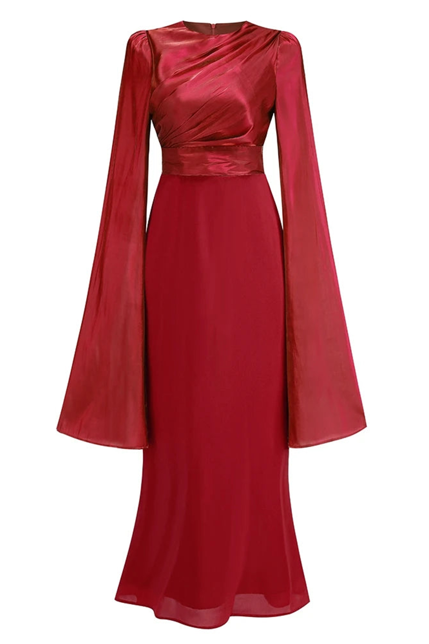 Marcia Long Sleeve Ruched Organza Maxi Dress