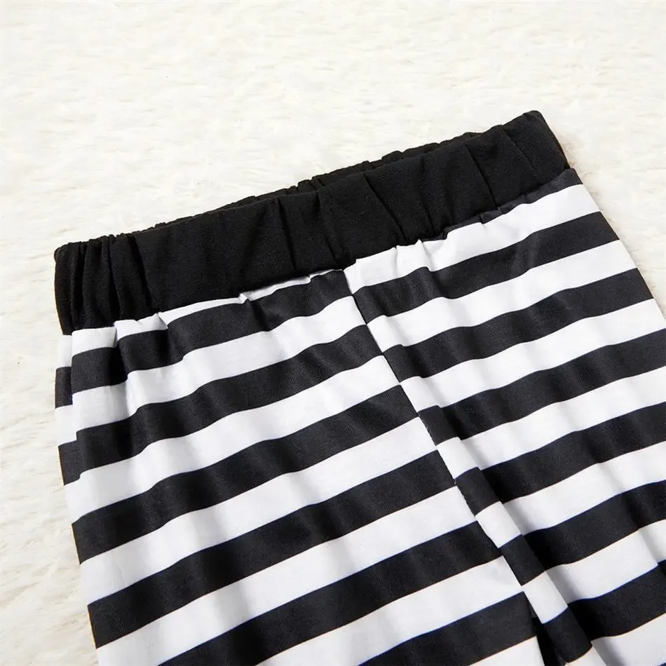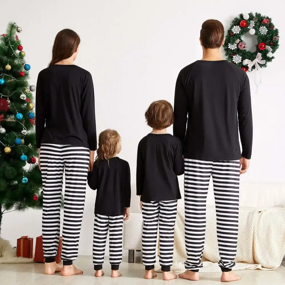 * Long-sleeve top and striped pants pajamas set