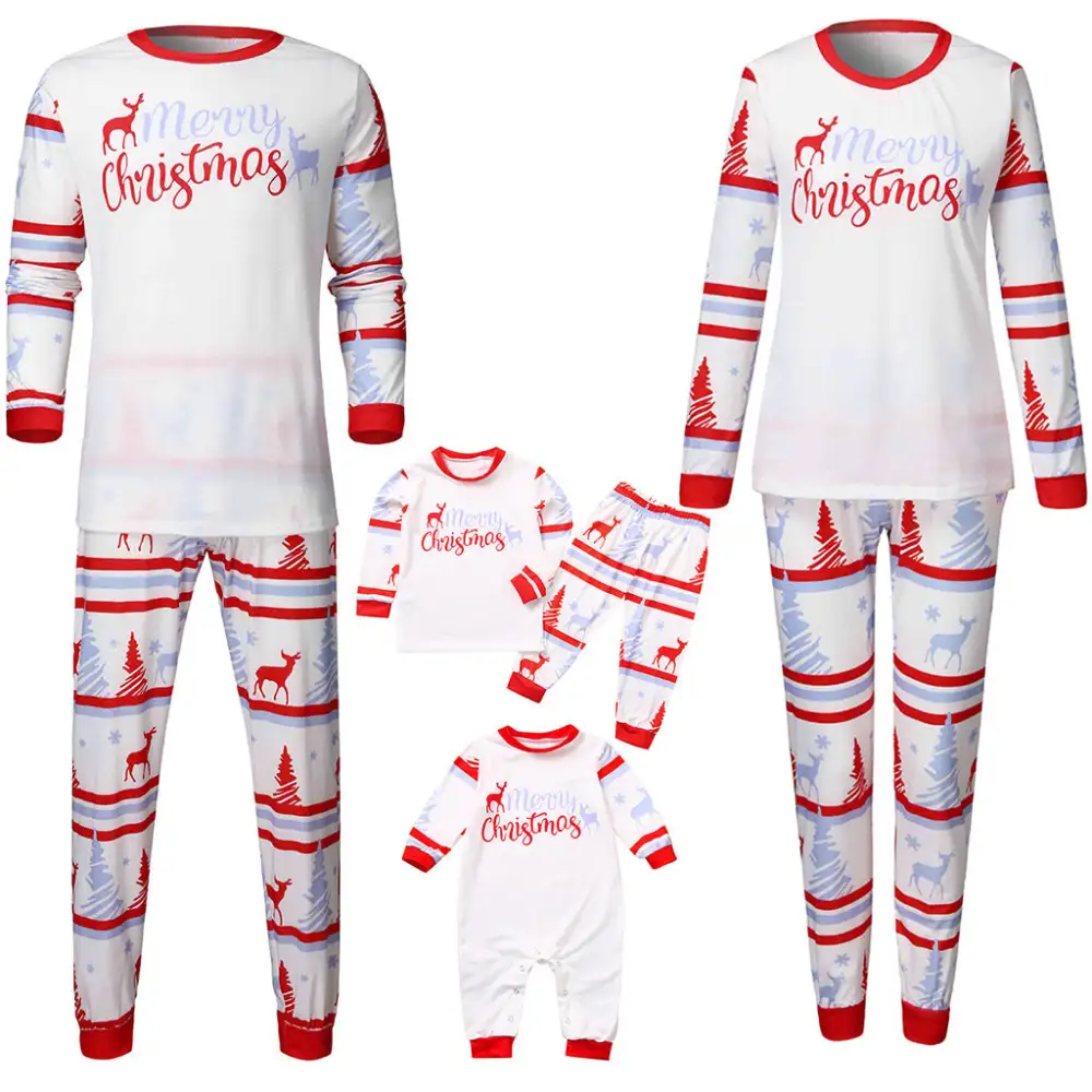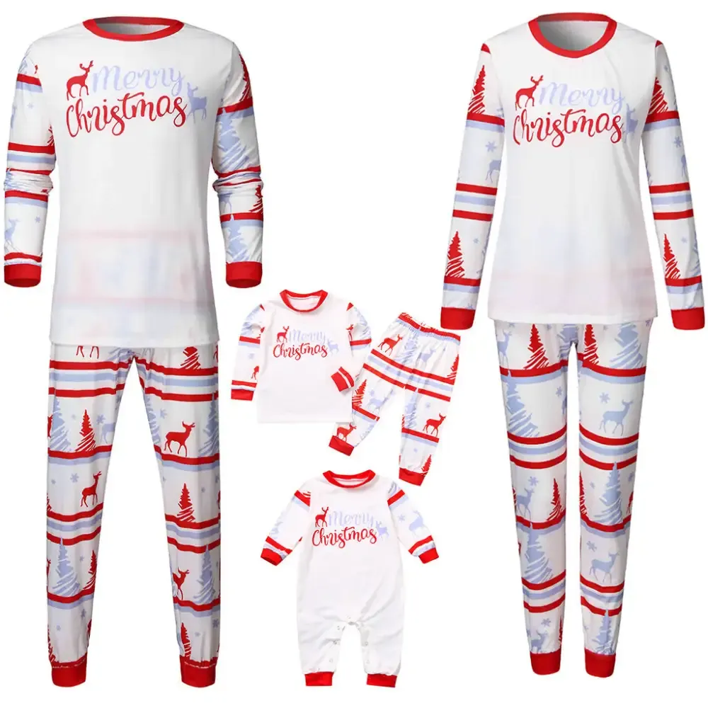 Merry Christmas Reindeer Print Xmas Snow Holiday Matching Pajamas Sets